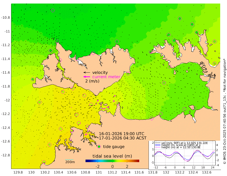 84cm/s 77T +4cm/s rms + 6cm/s 51T. Darwin_C1 52m 61cm/s 86T +4cm/s rms + 7cm/s -161T. Darwin_CW1 22m 28cm/s 76T +4cm/s rms + 8cm/s 61T. Darwin_CW2 34m 44cm/s 43T +3cm/s rms + 9cm/s 98T. Darwin_CW3 22m 39cm/s 89T +5cm/s rms + 7cm/s 88T. Darwin_C3 56m 49cm/s 65T +2cm/s rms + 9cm/s -126T. Darwin_CTbW 22m 15cm/s 88T +1cm/s rms + 1cm/s -47T. DARBGF 30m 17cm/s 110T +4cm/s rms + 3cm/s 80T. NRSDAR 19m -8cm Goodrich Bank 60cm Point Jenny 60cm Native Point 67cm Fish Reef 72cm Tapa Bay 28cm Point Fawcett (Offshore) 74cm Burge Point 62cm Munkunuwa 49cm Beagle A 80cm Parsons Bank 71cm Fenton Patches 78cm Hancox Shoal Area 87cm Nightcliff 89cm Darwin 78cm Charles Point Patches 63cm Glyde Point 40cm Chambers Bay 42cm Point Stuart 55cm Cape Hotham 34cm Christine Reef 41cm West Alligator Head 32cm East Field Island 43cm Two Hills Bay 44cm Camp Point 71cm Medina Inlet South 25cm South Barlow Point 8cm St. Asaph Bay -4cm Cape Van Dieman 6cm Snake Bay -3cm Cache Point 7cm Point Jahleel (Off) 32cm Cape Don 19cm Port Essington 18cm Smith Point - West 20cm NW Peacock Island 12cm North Of Jones Shoal 7cm Peacock Island 48cm Point David 26cm D'urville Point 50cm Copeland Island 44cm One Tree Point