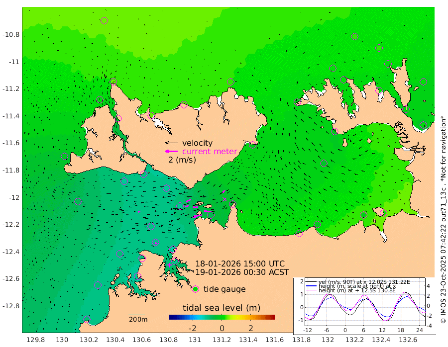 141cm/s -102T +4cm/s rms + 6cm/s 51T. Darwin_C1 52m 110cm/s -90T +4cm/s rms + 7cm/s -161T. Darwin_CW1 22m 65cm/s -108T +4cm/s rms + 8cm/s 61T. Darwin_CW2 34m 59cm/s -133T +3cm/s rms + 9cm/s 98T. Darwin_CW3 22m 78cm/s -91T +5cm/s rms + 7cm/s 88T. Darwin_C3 56m 83cm/s -115T +2cm/s rms + 9cm/s -126T. Darwin_CTbW 22m 35cm/s -91T +1cm/s rms + 1cm/s -47T. DARBGF 30m 34cm/s -67T +4cm/s rms + 3cm/s 80T. NRSDAR 19m 44cm Goodrich Bank -81cm Point Jenny -79cm Native Point -89cm Fish Reef -95cm Tapa Bay -21cm Point Fawcett (Offshore) -101cm Burge Point -102cm Munkunuwa -65cm Beagle A -105cm Parsons Bank -101cm Fenton Patches -101cm Hancox Shoal Area -120cm Nightcliff -109cm Darwin -91cm Charles Point Patches -60cm Glyde Point -26cm Chambers Bay -15cm Point Stuart -42cm Cape Hotham -23cm Christine Reef -17cm West Alligator Head 1cm East Field Island -17cm Two Hills Bay -16cm Camp Point -94cm Medina Inlet South -15cm South Barlow Point 5cm St. Asaph Bay 39cm Cape Van Dieman 36cm Snake Bay 40cm Cache Point 26cm Point Jahleel (Off) 0cm Cape Don 22cm Port Essington 17cm Smith Point - West 23cm NW Peacock Island 29cm North Of Jones Shoal 9cm Peacock Island 13cm Point David 17cm D'urville Point 8cm Copeland Island 14cm One Tree Point