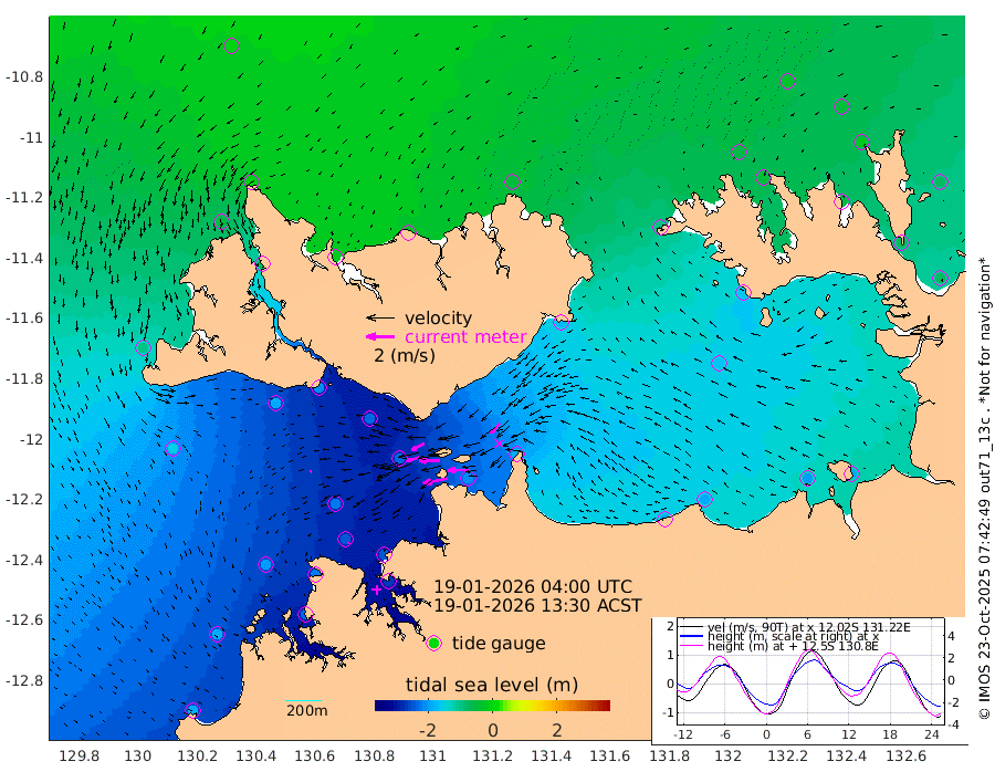 178cm/s -101T +4cm/s rms + 6cm/s 51T. Darwin_C1 52m 152cm/s -91T +4cm/s rms + 7cm/s -161T. Darwin_CW1 22m 85cm/s -106T +4cm/s rms + 8cm/s 61T. Darwin_CW2 34m 100cm/s -137T +3cm/s rms + 9cm/s 98T. Darwin_CW3 22m 143cm/s -90T +5cm/s rms + 7cm/s 88T. Darwin_C3 56m 100cm/s -116T +2cm/s rms + 9cm/s -126T. Darwin_CTbW 22m 13cm/s -124T +1cm/s rms + 1cm/s -47T. DARBGF 30m 9cm/s -145T +4cm/s rms + 3cm/s 80T. NRSDAR 19m -9cm Goodrich Bank -187cm Point Jenny -187cm Native Point -199cm Fish Reef -221cm Tapa Bay -94cm Point Fawcett (Offshore) -232cm Burge Point -189cm Munkunuwa -157cm Beagle A -227cm Parsons Bank -223cm Fenton Patches -235cm Hancox Shoal Area -243cm Nightcliff -268cm Darwin -245cm Charles Point Patches -210cm Glyde Point -187cm Chambers Bay -181cm Point Stuart -184cm Cape Hotham -167cm Christine Reef -192cm West Alligator Head -189cm East Field Island -158cm Two Hills Bay -169cm Camp Point -214cm Medina Inlet South -76cm South Barlow Point -46cm St. Asaph Bay -11cm Cape Van Dieman -22cm Snake Bay -17cm Cache Point -37cm Point Jahleel (Off) -93cm Cape Don -49cm Port Essington -44cm Smith Point - West -43cm NW Peacock Island -27cm North Of Jones Shoal -12cm Peacock Island -75cm Point David -48cm D'urville Point -76cm Copeland Island -71cm One Tree Point