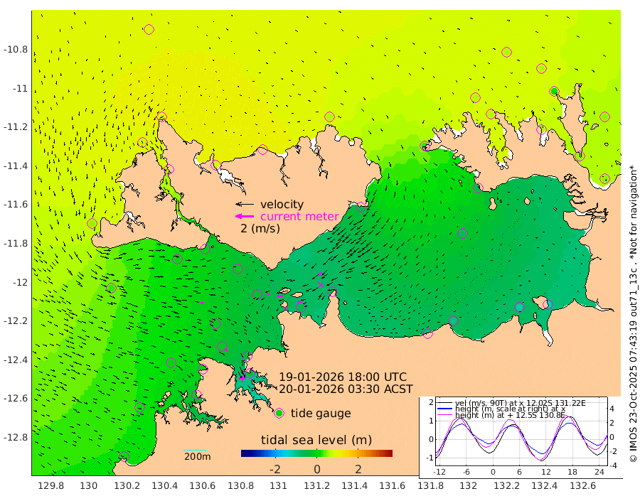 37cm/s -101T +4cm/s rms + 6cm/s 51T. Darwin_C1 52m 49cm/s -91T +4cm/s rms + 7cm/s -161T. Darwin_CW1 22m 26cm/s -107T +4cm/s rms + 8cm/s 61T. Darwin_CW2 34m 53cm/s -139T +3cm/s rms + 9cm/s 98T. Darwin_CW3 22m 61cm/s -91T +5cm/s rms + 7cm/s 88T. Darwin_C3 56m 5cm/s -99T +2cm/s rms + 9cm/s -126T. Darwin_CTbW 22m 32cm/s 101T +1cm/s rms + 1cm/s -47T. DARBGF 30m 35cm/s 134T +4cm/s rms + 3cm/s 80T. NRSDAR 19m 81cm Goodrich Bank 11cm Point Jenny 15cm Native Point -5cm Fish Reef -2cm Tapa Bay 55cm Point Fawcett (Offshore) -18cm Burge Point -5cm Munkunuwa 23cm Beagle A -21cm Parsons Bank -16cm Fenton Patches -31cm Hancox Shoal Area -35cm Nightcliff -38cm Darwin -12cm Charles Point Patches -50cm Glyde Point -95cm Chambers Bay -100cm Point Stuart -58cm Cape Hotham -78cm Christine Reef -119cm West Alligator Head -138cm East Field Island -61cm Two Hills Bay -52cm Camp Point -9cm Medina Inlet South 62cm South Barlow Point 70cm St. Asaph Bay 86cm Cape Van Dieman 84cm Snake Bay 79cm Cache Point 59cm Point Jahleel (Off) 23cm Cape Don 60cm Port Essington 60cm Smith Point - West 63cm NW Peacock Island 62cm North Of Jones Shoal 22cm Peacock Island 54cm Point David 63cm D'urville Point 48cm Copeland Island 49cm One Tree Point