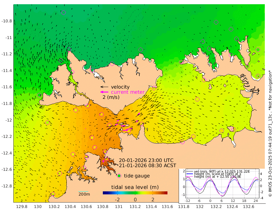 142cm/s 79T +4cm/s rms + 6cm/s 51T. Darwin_C1 52m 94cm/s 93T +4cm/s rms + 7cm/s -161T. Darwin_CW1 22m 72cm/s 71T +4cm/s rms + 8cm/s 61T. Darwin_CW2 34m 94cm/s 42T +3cm/s rms + 9cm/s 98T. Darwin_CW3 22m 110cm/s 89T +5cm/s rms + 7cm/s 88T. Darwin_C3 56m 66cm/s 65T +2cm/s rms + 9cm/s -126T. Darwin_CTbW 22m 7cm/s -40T +1cm/s rms + 1cm/s -47T. DARBGF 30m 15cm/s -30T +4cm/s rms + 3cm/s 80T. NRSDAR 19m -63cm Goodrich Bank 91cm Point Jenny 90cm Native Point 102cm Fish Reef 127cm Tapa Bay 1cm Point Fawcett (Offshore) 132cm Burge Point 110cm Munkunuwa 57cm Beagle A 150cm Parsons Bank 125cm Fenton Patches 160cm Hancox Shoal Area 158cm Nightcliff 172cm Darwin 140cm Charles Point Patches 135cm Glyde Point 132cm Chambers Bay 131cm Point Stuart 126cm Cape Hotham 111cm Christine Reef 142cm West Alligator Head 139cm East Field Island 104cm Two Hills Bay 106cm Camp Point 117cm Medina Inlet South -6cm South Barlow Point -35cm St. Asaph Bay -60cm Cape Van Dieman -49cm Snake Bay -56cm Cache Point -27cm Point Jahleel (Off) 30cm Cape Don -9cm Port Essington -10cm Smith Point - West -7cm NW Peacock Island -31cm North Of Jones Shoal -7cm Peacock Island 45cm Point David 1cm D'urville Point 51cm Copeland Island 32cm One Tree Point