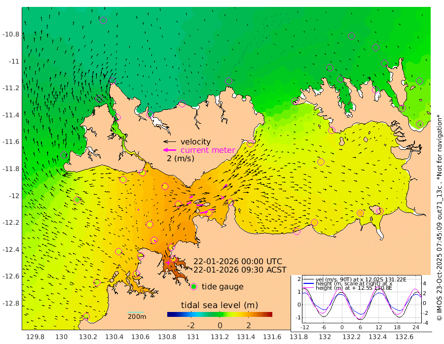 126cm/s 79T +4cm/s rms + 6cm/s 51T. Darwin_C1 52m 79cm/s 94T +4cm/s rms + 7cm/s -161T. Darwin_CW1 22m 68cm/s 70T +4cm/s rms + 8cm/s 61T. Darwin_CW2 34m 87cm/s 43T +3cm/s rms + 9cm/s 98T. Darwin_CW3 22m 107cm/s 89T +5cm/s rms + 7cm/s 88T. Darwin_C3 56m 58cm/s 65T +2cm/s rms + 9cm/s -126T. Darwin_CTbW 22m 20cm/s -71T +1cm/s rms + 1cm/s -47T. DARBGF 30m 32cm/s -45T +4cm/s rms + 3cm/s 80T. NRSDAR 19m -75cm Goodrich Bank 75cm Point Jenny 73cm Native Point 85cm Fish Reef 110cm Tapa Bay -18cm Point Fawcett (Offshore) 116cm Burge Point 90cm Munkunuwa 38cm Beagle A 136cm Parsons Bank 109cm Fenton Patches 150cm Hancox Shoal Area 144cm Nightcliff 159cm Darwin 124cm Charles Point Patches 137cm Glyde Point 154cm Chambers Bay 155cm Point Stuart 133cm Cape Hotham 131cm Christine Reef 171cm West Alligator Head 175cm East Field Island 118cm Two Hills Bay 116cm Camp Point 99cm Medina Inlet South -26cm South Barlow Point -53cm St. Asaph Bay -74cm Cape Van Dieman -65cm Snake Bay -68cm Cache Point -36cm Point Jahleel (Off) 26cm Cape Don -19cm Port Essington -19cm Smith Point - West -15cm NW Peacock Island -40cm North Of Jones Shoal -10cm Peacock Island 37cm Point David -8cm D'urville Point 45cm Copeland Island 25cm One Tree Point