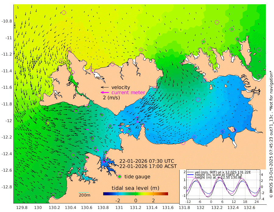 21cm/s -101T +4cm/s rms + 6cm/s 51T. Darwin_C1 52m 15cm/s -99T +4cm/s rms + 7cm/s -161T. Darwin_CW1 22m 10cm/s -104T +4cm/s rms + 8cm/s 61T. Darwin_CW2 34m 56cm/s -141T +3cm/s rms + 9cm/s 98T. Darwin_CW3 22m 49cm/s -89T +5cm/s rms + 7cm/s 88T. Darwin_C3 56m 0cm/s 42T +2cm/s rms + 9cm/s -126T. Darwin_CTbW 22m 65cm/s 97T +1cm/s rms + 1cm/s -47T. DARBGF 30m 73cm/s 128T +4cm/s rms + 3cm/s 80T. NRSDAR 19m 81cm Goodrich Bank 7cm Point Jenny 9cm Native Point 1cm Fish Reef -18cm Tapa Bay 69cm Point Fawcett (Offshore) -26cm Burge Point 12cm Munkunuwa 39cm Beagle A -40cm Parsons Bank -18cm Fenton Patches -65cm Hancox Shoal Area -47cm Nightcliff -70cm Darwin -42cm Charles Point Patches -104cm Glyde Point -181cm Chambers Bay -193cm Point Stuart -117cm Cape Hotham -155cm Christine Reef -217cm West Alligator Head -250cm East Field Island -130cm Two Hills Bay -131cm Camp Point -12cm Medina Inlet South 77cm South Barlow Point 88cm St. Asaph Bay 87cm Cape Van Dieman 81cm Snake Bay 75cm Cache Point 49cm Point Jahleel (Off) -15cm Cape Don 32cm Port Essington 39cm Smith Point - West 31cm NW Peacock Island 48cm North Of Jones Shoal 14cm Peacock Island -13cm Point David 30cm D'urville Point -20cm Copeland Island -8cm One Tree Point