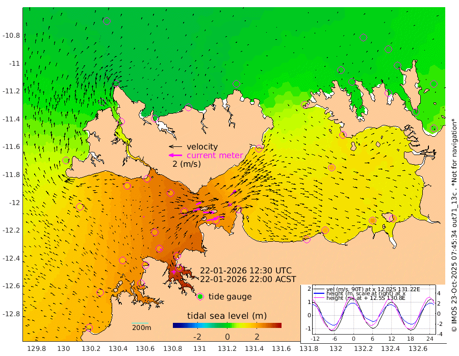 167cm/s 79T +4cm/s rms + 6cm/s 51T. Darwin_C1 52m 115cm/s 93T +4cm/s rms + 7cm/s -161T. Darwin_CW1 22m 107cm/s 71T +4cm/s rms + 8cm/s 61T. Darwin_CW2 34m 106cm/s 46T +3cm/s rms + 9cm/s 98T. Darwin_CW3 22m 169cm/s 90T +5cm/s rms + 7cm/s 88T. Darwin_C3 56m 84cm/s 66T +2cm/s rms + 9cm/s -126T. Darwin_CTbW 22m 11cm/s -19T +1cm/s rms + 1cm/s -47T. DARBGF 30m 24cm/s -32T +4cm/s rms + 3cm/s 80T. NRSDAR 19m -32cm Goodrich Bank 159cm Point Jenny 158cm Native Point 171cm Fish Reef 188cm Tapa Bay 51cm Point Fawcett (Offshore) 215cm Burge Point 172cm Munkunuwa 130cm Beagle A 209cm Parsons Bank 203cm Fenton Patches 213cm Hancox Shoal Area 229cm Nightcliff 242cm Darwin 204cm Charles Point Patches 195cm Glyde Point 196cm Chambers Bay 189cm Point Stuart 174cm Cape Hotham 181cm Christine Reef 208cm West Alligator Head 211cm East Field Island 155cm Two Hills Bay 156cm Camp Point 188cm Medina Inlet South 39cm South Barlow Point 7cm St. Asaph Bay -33cm Cape Van Dieman -22cm Snake Bay -26cm Cache Point 1cm Point Jahleel (Off) 64cm Cape Don 4cm Port Essington 4cm Smith Point - West 0cm NW Peacock Island -14cm North Of Jones Shoal -4cm Peacock Island 20cm Point David 4cm D'urville Point 23cm Copeland Island 22cm One Tree Point
