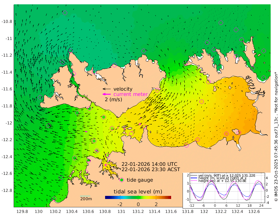 15cm/s 81T +4cm/s rms + 6cm/s 51T. Darwin_C1 52m 16cm/s 88T +4cm/s rms + 7cm/s -161T. Darwin_CW1 22m 21cm/s 70T +4cm/s rms + 8cm/s 61T. Darwin_CW2 34m 36cm/s 43T +3cm/s rms + 9cm/s 98T. Darwin_CW3 22m 55cm/s 92T +5cm/s rms + 7cm/s 88T. Darwin_C3 56m 8cm/s 74T +2cm/s rms + 9cm/s -126T. Darwin_CTbW 22m 55cm/s -81T +1cm/s rms + 1cm/s -47T. DARBGF 30m 69cm/s -52T +4cm/s rms + 3cm/s 80T. NRSDAR 19m -64cm Goodrich Bank 1cm Point Jenny -2cm Native Point 8cm Fish Reef 15cm Tapa Bay -52cm Point Fawcett (Offshore) 35cm Burge Point -4cm Munkunuwa -17cm Beagle A 33cm Parsons Bank 29cm Fenton Patches 51cm Hancox Shoal Area 50cm Nightcliff 62cm Darwin 34cm Charles Point Patches 96cm Glyde Point 170cm Chambers Bay 180cm Point Stuart 107cm Cape Hotham 151cm Christine Reef 206cm West Alligator Head 240cm East Field Island 122cm Two Hills Bay 121cm Camp Point 18cm Medina Inlet South -60cm South Barlow Point -67cm St. Asaph Bay -72cm Cape Van Dieman -66cm Snake Bay -61cm Cache Point -39cm Point Jahleel (Off) 13cm Cape Don -37cm Port Essington -42cm Smith Point - West -40cm NW Peacock Island -44cm North Of Jones Shoal -15cm Peacock Island -21cm Point David -42cm D'urville Point -17cm Copeland Island -16cm One Tree Point