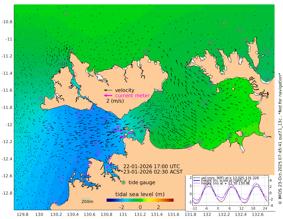 201cm/s -102T +4cm/s rms + 6cm/s 51T. Darwin_C1 52m 140cm/s -90T +4cm/s rms + 7cm/s -161T. Darwin_CW1 22m 109cm/s -108T +4cm/s rms + 8cm/s 61T. Darwin_CW2 34m 89cm/s -132T +3cm/s rms + 9cm/s 98T. Darwin_CW3 22m 143cm/s -91T +5cm/s rms + 7cm/s 88T. Darwin_C3 56m 111cm/s -115T +2cm/s rms + 9cm/s -126T. Darwin_CTbW 22m 51cm/s -93T +1cm/s rms + 1cm/s -47T. DARBGF 30m 43cm/s -69T +4cm/s rms + 3cm/s 80T. NRSDAR 19m 1cm Goodrich Bank -183cm Point Jenny -182cm Native Point -191cm Fish Reef -209cm Tapa Bay -93cm Point Fawcett (Offshore) -218cm Burge Point -209cm Munkunuwa -160cm Beagle A -223cm Parsons Bank -214cm Fenton Patches -214cm Hancox Shoal Area -231cm Nightcliff -231cm Darwin -207cm Charles Point Patches -143cm Glyde Point -76cm Chambers Bay -59cm Point Stuart -112cm Cape Hotham -71cm Christine Reef -59cm West Alligator Head -27cm East Field Island -71cm Two Hills Bay -69cm Camp Point -201cm Medina Inlet South -86cm South Barlow Point -52cm St. Asaph Bay -7cm Cape Van Dieman -15cm Snake Bay -5cm Cache Point -23cm Point Jahleel (Off) -54cm Cape Don -28cm Port Essington -35cm Smith Point - West -29cm NW Peacock Island -10cm North Of Jones Shoal -6cm Peacock Island -48cm Point David -39cm D'urville Point -50cm Copeland Island -40cm One Tree Point