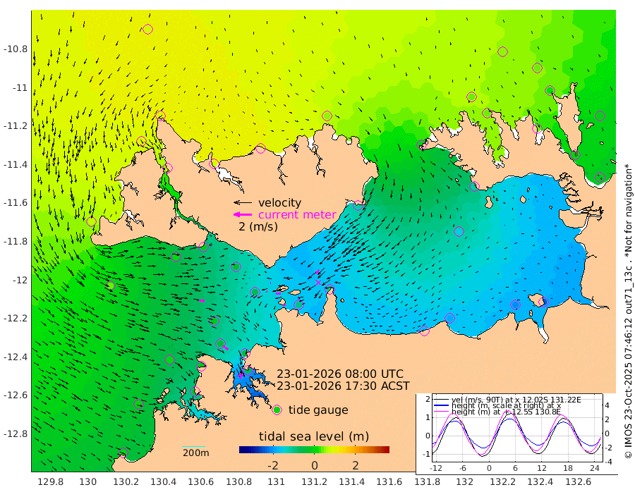 29cm/s -101T +4cm/s rms + 6cm/s 51T. Darwin_C1 52m 15cm/s -97T +4cm/s rms + 7cm/s -161T. Darwin_CW1 22m 12cm/s -105T +4cm/s rms + 8cm/s 61T. Darwin_CW2 34m 53cm/s -140T +3cm/s rms + 9cm/s 98T. Darwin_CW3 22m 50cm/s -89T +5cm/s rms + 7cm/s 88T. Darwin_C3 56m 6cm/s -116T +2cm/s rms + 9cm/s -126T. Darwin_CTbW 22m 60cm/s 97T +1cm/s rms + 1cm/s -47T. DARBGF 30m 69cm/s 129T +4cm/s rms + 3cm/s 80T. NRSDAR 19m 86cm Goodrich Bank 3cm Point Jenny 6cm Native Point 1cm Fish Reef -18cm Tapa Bay 71cm Point Fawcett (Offshore) -28cm Burge Point 8cm Munkunuwa 37cm Beagle A -42cm Parsons Bank -19cm Fenton Patches -64cm Hancox Shoal Area -50cm Nightcliff -67cm Darwin -37cm Charles Point Patches -99cm Glyde Point -173cm Chambers Bay -183cm Point Stuart -110cm Cape Hotham -151cm Christine Reef -207cm West Alligator Head -236cm East Field Island -123cm Two Hills Bay -122cm Camp Point -12cm Medina Inlet South 78cm South Barlow Point 90cm St. Asaph Bay 91cm Cape Van Dieman 87cm Snake Bay 80cm Cache Point 53cm Point Jahleel (Off) -11cm Cape Don 37cm Port Essington 43cm Smith Point - West 36cm NW Peacock Island 53cm North Of Jones Shoal 16cm Peacock Island -7cm Point David 35cm D'urville Point -14cm Copeland Island -2cm One Tree Point