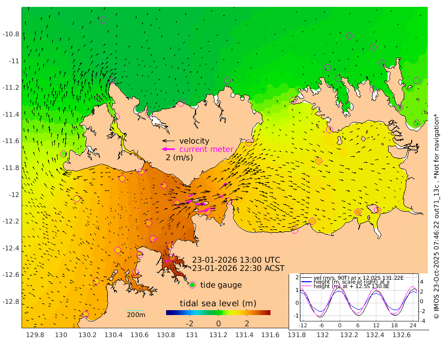 156cm/s 78T +4cm/s rms + 6cm/s 51T. Darwin_C1 52m 104cm/s 93T +4cm/s rms + 7cm/s -161T. Darwin_CW1 22m 101cm/s 71T +4cm/s rms + 8cm/s 61T. Darwin_CW2 34m 100cm/s 46T +3cm/s rms + 9cm/s 98T. Darwin_CW3 22m 163cm/s 90T +5cm/s rms + 7cm/s 88T. Darwin_C3 56m 78cm/s 66T +2cm/s rms + 9cm/s -126T. Darwin_CTbW 22m 11cm/s -28T +1cm/s rms + 1cm/s -47T. DARBGF 30m 23cm/s -32T +4cm/s rms + 3cm/s 80T. NRSDAR 19m -37cm Goodrich Bank 149cm Point Jenny 148cm Native Point 160cm Fish Reef 177cm Tapa Bay 42cm Point Fawcett (Offshore) 205cm Burge Point 164cm Munkunuwa 120cm Beagle A 202cm Parsons Bank 193cm Fenton Patches 204cm Hancox Shoal Area 218cm Nightcliff 230cm Darwin 190cm Charles Point Patches 187cm Glyde Point 188cm Chambers Bay 184cm Point Stuart 169cm Cape Hotham 173cm Christine Reef 203cm West Alligator Head 204cm East Field Island 151cm Two Hills Bay 149cm Camp Point 177cm Medina Inlet South 33cm South Barlow Point -1cm St. Asaph Bay -37cm Cape Van Dieman -25cm Snake Bay -30cm Cache Point -2cm Point Jahleel (Off) 60cm Cape Don 2cm Port Essington 2cm Smith Point - West 0cm NW Peacock Island -18cm North Of Jones Shoal -5cm Peacock Island 25cm Point David 4cm D'urville Point 28cm Copeland Island 24cm One Tree Point