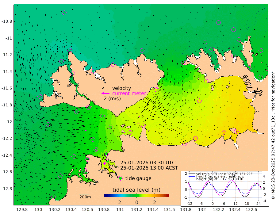 18cm/s 83T +4cm/s rms + 6cm/s 51T. Darwin_C1 52m 9cm/s 84T +4cm/s rms + 7cm/s -161T. Darwin_CW1 22m 1cm/s -22T +4cm/s rms + 8cm/s 61T. Darwin_CW2 34m 27cm/s 40T +3cm/s rms + 9cm/s 98T. Darwin_CW3 22m 18cm/s 95T +5cm/s rms + 7cm/s 88T. Darwin_C3 56m 9cm/s 68T +2cm/s rms + 9cm/s -126T. Darwin_CTbW 22m 48cm/s -84T +1cm/s rms + 1cm/s -47T. DARBGF 30m 59cm/s -54T +4cm/s rms + 3cm/s 80T. NRSDAR 19m -75cm Goodrich Bank -17cm Point Jenny -22cm Native Point -20cm Fish Reef -6cm Tapa Bay -66cm Point Fawcett (Offshore) -5cm Burge Point -35cm Munkunuwa -38cm Beagle A 4cm Parsons Bank -1cm Fenton Patches 32cm Hancox Shoal Area 22cm Nightcliff 18cm Darwin -3cm Charles Point Patches 65cm Glyde Point 142cm Chambers Bay 151cm Point Stuart 84cm Cape Hotham 129cm Christine Reef 173cm West Alligator Head 203cm East Field Island 98cm Two Hills Bay 91cm Camp Point -20cm Medina Inlet South -80cm South Barlow Point -79cm St. Asaph Bay -80cm Cape Van Dieman -82cm Snake Bay -66cm Cache Point -45cm Point Jahleel (Off) -1cm Cape Don -41cm Port Essington -38cm Smith Point - West -34cm NW Peacock Island -47cm North Of Jones Shoal -15cm Peacock Island -6cm Point David -34cm D'urville Point 2cm Copeland Island -11cm One Tree Point