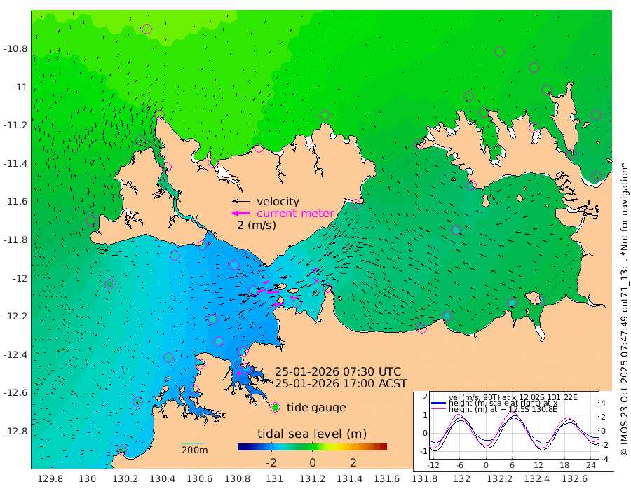 129cm/s -101T +4cm/s rms + 6cm/s 51T. Darwin_C1 52m 84cm/s -90T +4cm/s rms + 7cm/s -161T. Darwin_CW1 22m 80cm/s -107T +4cm/s rms + 8cm/s 61T. Darwin_CW2 34m 64cm/s -133T +3cm/s rms + 9cm/s 98T. Darwin_CW3 22m 127cm/s -91T +5cm/s rms + 7cm/s 88T. Darwin_C3 56m 71cm/s -115T +2cm/s rms + 9cm/s -126T. Darwin_CTbW 22m 9cm/s -126T +1cm/s rms + 1cm/s -47T. DARBGF 30m 9cm/s -144T +4cm/s rms + 3cm/s 80T. NRSDAR 19m 39cm Goodrich Bank -111cm Point Jenny -111cm Native Point -116cm Fish Reef -134cm Tapa Bay -25cm Point Fawcett (Offshore) -150cm Burge Point -133cm Munkunuwa -75cm Beagle A -161cm Parsons Bank -132cm Fenton Patches -156cm Hancox Shoal Area -156cm Nightcliff -171cm Darwin -141cm Charles Point Patches -125cm Glyde Point -110cm Chambers Bay -107cm Point Stuart -108cm Cape Hotham -101cm Christine Reef -116cm West Alligator Head -103cm East Field Island -92cm Two Hills Bay -87cm Camp Point -132cm Medina Inlet South -21cm South Barlow Point 10cm St. Asaph Bay 35cm Cape Van Dieman 28cm Snake Bay 34cm Cache Point 12cm Point Jahleel (Off) -42cm Cape Don -3cm Port Essington -2cm Smith Point - West -2cm NW Peacock Island 19cm North Of Jones Shoal 4cm Peacock Island -34cm Point David -9cm D'urville Point -37cm Copeland Island -28cm One Tree Point