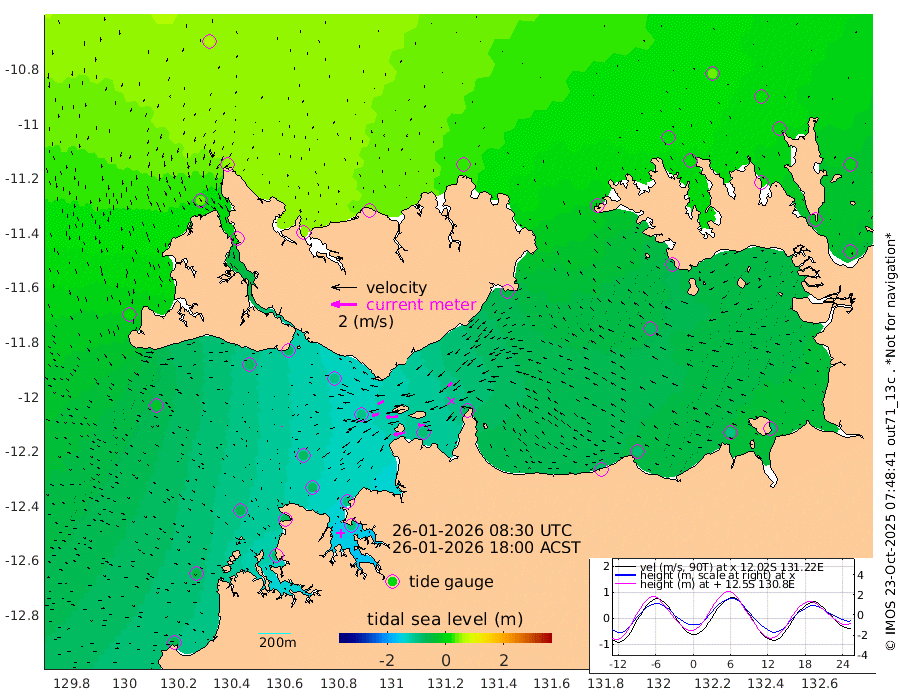 90cm/s -101T +4cm/s rms + 6cm/s 51T. Darwin_C1 52m 53cm/s -90T +4cm/s rms + 7cm/s -161T. Darwin_CW1 22m 55cm/s -107T +4cm/s rms + 8cm/s 61T. Darwin_CW2 34m 44cm/s -132T +3cm/s rms + 9cm/s 98T. Darwin_CW3 22m 89cm/s -91T +5cm/s rms + 7cm/s 88T. Darwin_C3 56m 52cm/s -115T +2cm/s rms + 9cm/s -126T. Darwin_CTbW 22m 5cm/s 150T +1cm/s rms + 1cm/s -47T. DARBGF 30m 10cm/s 167T +4cm/s rms + 3cm/s 80T. NRSDAR 19m 57cm Goodrich Bank -56cm Point Jenny -55cm Native Point -60cm Fish Reef -73cm Tapa Bay 12cm Point Fawcett (Offshore) -84cm Burge Point -76cm Munkunuwa -24cm Beagle A -99cm Parsons Bank -70cm Fenton Patches -95cm Hancox Shoal Area -92cm Nightcliff -101cm Darwin -73cm Charles Point Patches -79cm Glyde Point -81cm Chambers Bay -85cm Point Stuart -73cm Cape Hotham -74cm Christine Reef -95cm West Alligator Head -87cm East Field Island -66cm Two Hills Bay -56cm Camp Point -71cm Medina Inlet South 15cm South Barlow Point 38cm St. Asaph Bay 54cm Cape Van Dieman 49cm Snake Bay 52cm Cache Point 32cm Point Jahleel (Off) -15cm Cape Don 18cm Port Essington 18cm Smith Point - West 18cm NW Peacock Island 37cm North Of Jones Shoal 10cm Peacock Island -14cm Point David 12cm D'urville Point -18cm Copeland Island -7cm One Tree Point