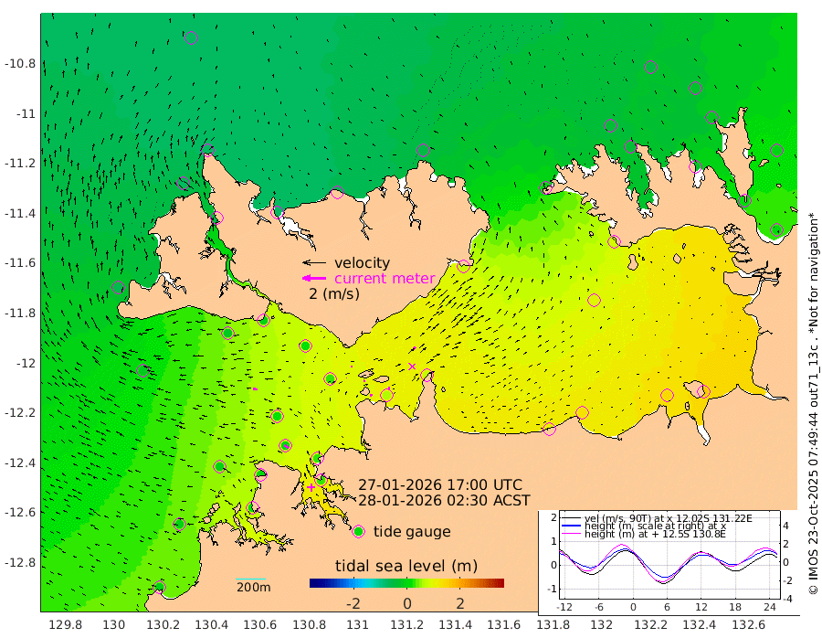 21cm/s 78T +4cm/s rms + 6cm/s 51T. Darwin_C1 52m 15cm/s 83T +4cm/s rms + 7cm/s -161T. Darwin_CW1 22m 2cm/s 49T +4cm/s rms + 8cm/s 61T. Darwin_CW2 34m 28cm/s 39T +3cm/s rms + 9cm/s 98T. Darwin_CW3 22m 17cm/s 96T +5cm/s rms + 7cm/s 88T. Darwin_C3 56m 11cm/s 63T +2cm/s rms + 9cm/s -126T. Darwin_CTbW 22m 38cm/s -84T +1cm/s rms + 1cm/s -47T. DARBGF 30m 43cm/s -53T +4cm/s rms + 3cm/s 80T. NRSDAR 19m -72cm Goodrich Bank -8cm Point Jenny -9cm Native Point -4cm Fish Reef 2cm Tapa Bay -63cm Point Fawcett (Offshore) 17cm Burge Point -13cm Munkunuwa -21cm Beagle A 22cm Parsons Bank 18cm Fenton Patches 32cm Hancox Shoal Area 27cm Nightcliff 31cm Darwin 3cm Charles Point Patches 64cm Glyde Point 106cm Chambers Bay 126cm Point Stuart 75cm Cape Hotham 97cm Christine Reef 143cm West Alligator Head 164cm East Field Island 83cm Two Hills Bay 78cm Camp Point -5cm Medina Inlet South -65cm South Barlow Point -77cm St. Asaph Bay -73cm Cape Van Dieman -68cm Snake Bay -66cm Cache Point -45cm Point Jahleel (Off) -1cm Cape Don -37cm Port Essington -38cm Smith Point - West -32cm NW Peacock Island -53cm North Of Jones Shoal -16cm Peacock Island 6cm Point David -29cm D'urville Point 11cm Copeland Island -3cm One Tree Point