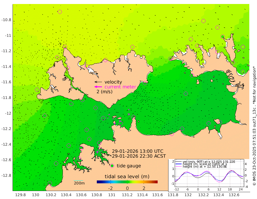 53cm/s -102T +4cm/s rms + 6cm/s 51T. Darwin_C1 52m 54cm/s -89T +4cm/s rms + 7cm/s -161T. Darwin_CW1 22m 16cm/s -112T +4cm/s rms + 8cm/s 61T. Darwin_CW2 34m 29cm/s -135T +3cm/s rms + 9cm/s 98T. Darwin_CW3 22m 22cm/s -90T +5cm/s rms + 7cm/s 88T. Darwin_C3 56m 27cm/s -114T +2cm/s rms + 9cm/s -126T. Darwin_CTbW 22m 5cm/s 98T +1cm/s rms + 1cm/s -47T. DARBGF 30m 4cm/s 155T +4cm/s rms + 3cm/s 80T. NRSDAR 19m 79cm Goodrich Bank 0cm Point Jenny 3cm Native Point 2cm Fish Reef -5cm Tapa Bay 50cm Point Fawcett (Offshore) -11cm Burge Point -9cm Munkunuwa 15cm Beagle A -11cm Parsons Bank -11cm Fenton Patches -15cm Hancox Shoal Area -21cm Nightcliff -7cm Darwin 12cm Charles Point Patches -13cm Glyde Point -26cm Chambers Bay -33cm Point Stuart -15cm Cape Hotham -25cm Christine Reef -43cm West Alligator Head -46cm East Field Island -10cm Two Hills Bay -7cm Camp Point 4cm Medina Inlet South 58cm South Barlow Point 64cm St. Asaph Bay 77cm Cape Van Dieman 82cm Snake Bay 76cm Cache Point 62cm Point Jahleel (Off) 38cm Cape Don 64cm Port Essington 61cm Smith Point - West 64cm NW Peacock Island 73cm North Of Jones Shoal 25cm Peacock Island 48cm Point David 61cm D'urville Point 43cm Copeland Island 54cm One Tree Point