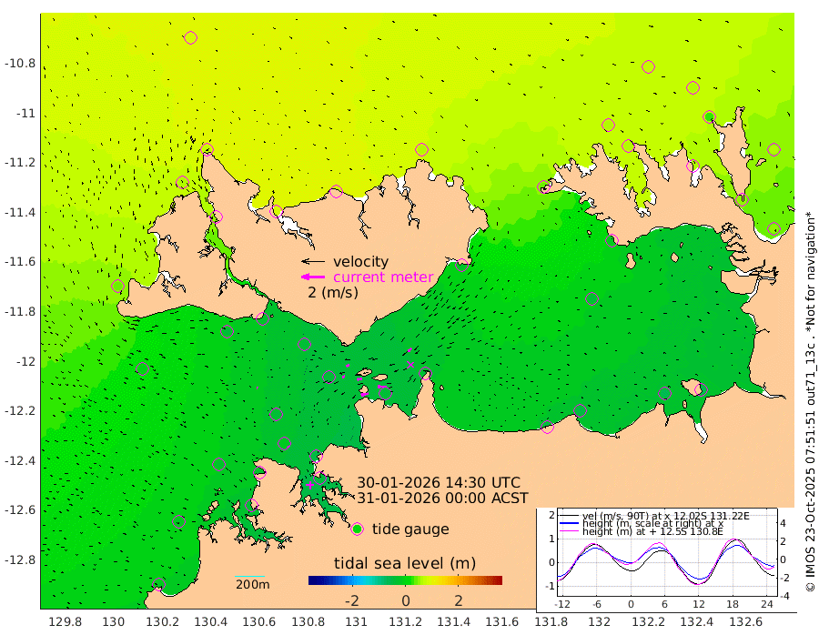 66cm/s -101T +4cm/s rms + 6cm/s 51T. Darwin_C1 52m 76cm/s -91T +4cm/s rms + 7cm/s -161T. Darwin_CW1 22m 25cm/s -110T +4cm/s rms + 8cm/s 61T. Darwin_CW2 34m 43cm/s -136T +3cm/s rms + 9cm/s 98T. Darwin_CW3 22m 41cm/s -92T +5cm/s rms + 7cm/s 88T. Darwin_C3 56m 29cm/s -115T +2cm/s rms + 9cm/s -126T. Darwin_CTbW 22m 8cm/s 108T +1cm/s rms + 1cm/s -47T. DARBGF 30m 8cm/s 151T +4cm/s rms + 3cm/s 80T. NRSDAR 19m 80cm Goodrich Bank -20cm Point Jenny -19cm Native Point -23cm Fish Reef -32cm Tapa Bay 41cm Point Fawcett (Offshore) -43cm Burge Point -36cm Munkunuwa -6cm Beagle A -39cm Parsons Bank -43cm Fenton Patches -43cm Hancox Shoal Area -51cm Nightcliff -42cm Darwin -19cm Charles Point Patches -37cm Glyde Point -45cm Chambers Bay -49cm Point Stuart -34cm Cape Hotham -41cm Christine Reef -60cm West Alligator Head -64cm East Field Island -22cm Two Hills Bay -24cm Camp Point -23cm Medina Inlet South 50cm South Barlow Point 59cm St. Asaph Bay 79cm Cape Van Dieman 82cm Snake Bay 78cm Cache Point 62cm Point Jahleel (Off) 35cm Cape Don 66cm Port Essington 64cm Smith Point - West 67cm NW Peacock Island 77cm North Of Jones Shoal 26cm Peacock Island 54cm Point David 65cm D'urville Point 49cm Copeland Island 60cm One Tree Point