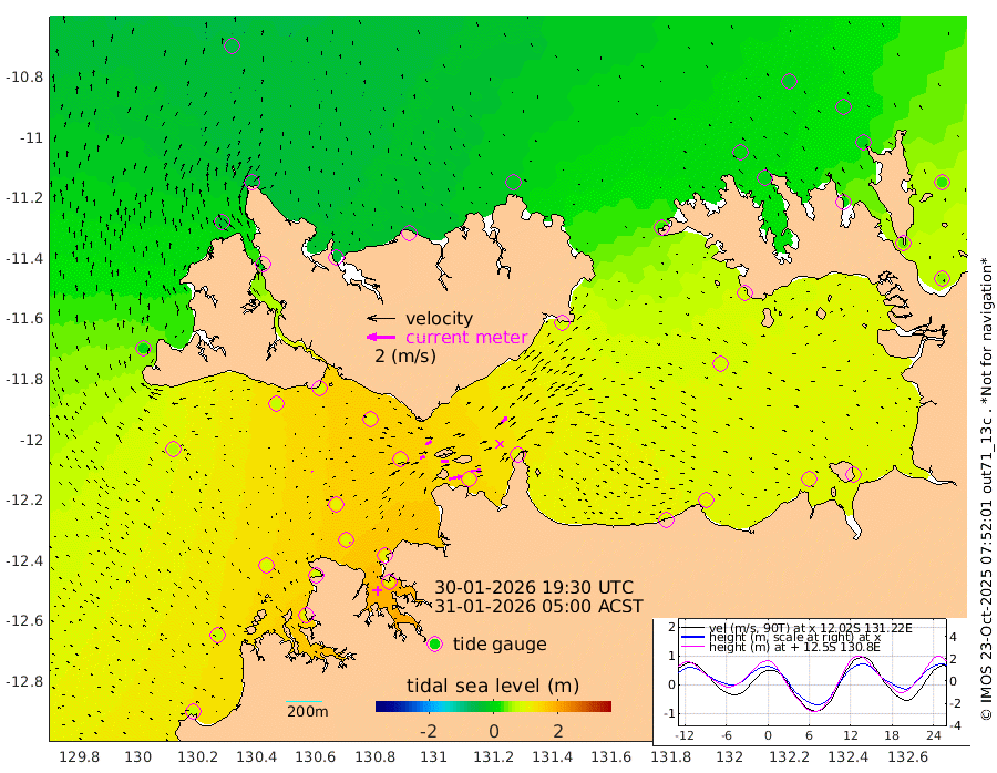 91cm/s 78T +4cm/s rms + 6cm/s 51T. Darwin_C1 52m 73cm/s 91T +4cm/s rms + 7cm/s -161T. Darwin_CW1 22m 34cm/s 72T +4cm/s rms + 8cm/s 61T. Darwin_CW2 34m 61cm/s 40T +3cm/s rms + 9cm/s 98T. Darwin_CW3 22m 52cm/s 90T +5cm/s rms + 7cm/s 88T. Darwin_C3 56m 44cm/s 64T +2cm/s rms + 9cm/s -126T. Darwin_CTbW 22m 4cm/s -47T +1cm/s rms + 1cm/s -47T. DARBGF 30m 5cm/s -16T +4cm/s rms + 3cm/s 80T. NRSDAR 19m -46cm Goodrich Bank 73cm Point Jenny 72cm Native Point 83cm Fish Reef 90cm Tapa Bay 1cm Point Fawcett (Offshore) 106cm Burge Point 74cm Munkunuwa 57cm Beagle A 109cm Parsons Bank 103cm Fenton Patches 109cm Hancox Shoal Area 106cm Nightcliff 119cm Darwin 96cm Charles Point Patches 104cm Glyde Point 96cm Chambers Bay 108cm Point Stuart 98cm Cape Hotham 87cm Christine Reef 115cm West Alligator Head 116cm East Field Island 83cm Two Hills Bay 84cm Camp Point 81cm Medina Inlet South -6cm South Barlow Point -29cm St. Asaph Bay -41cm Cape Van Dieman -37cm Snake Bay -37cm Cache Point -18cm Point Jahleel (Off) 29cm Cape Don 0cm Port Essington -2cm Smith Point - West 2cm NW Peacock Island -25cm North Of Jones Shoal -5cm Peacock Island 43cm Point David 9cm D'urville Point 48cm Copeland Island 31cm One Tree Point