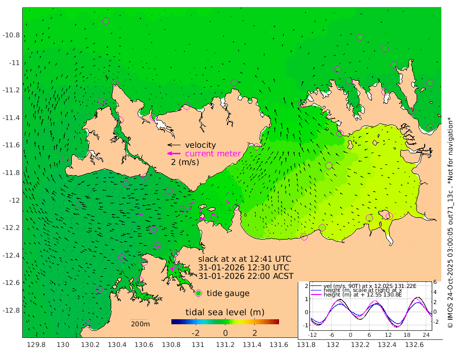 97cm/s -103T +4cm/s rms + 6cm/s 51T. Darwin_C1 52m 49cm/s -87T +4cm/s rms + 7cm/s -161T. Darwin_CW1 22m 42cm/s -111T +4cm/s rms + 8cm/s 61T. Darwin_CW2 34m 24cm/s -115T +3cm/s rms + 9cm/s 98T. Darwin_CW3 22m 23cm/s -96T +5cm/s rms + 7cm/s 88T. Darwin_C3 56m 64cm/s -116T +2cm/s rms + 9cm/s -126T. Darwin_CTbW 22m 47cm/s -86T +1cm/s rms + 1cm/s -47T. DARBGF 30m 47cm/s -58T +4cm/s rms + 3cm/s 80T. NRSDAR 19m 14cm Goodrich Bank -48cm Point Jenny -47cm Native Point -54cm Fish Reef -49cm Tapa Bay -26cm Point Fawcett (Offshore) -44cm Burge Point -64cm Munkunuwa -44cm Beagle A -52cm Parsons Bank -48cm Fenton Patches -37cm Hancox Shoal Area -43cm Nightcliff -36cm Darwin -32cm Charles Point Patches 2cm Glyde Point 55cm Chambers Bay 55cm Point Stuart 15cm Cape Hotham 51cm Christine Reef 64cm West Alligator Head 92cm East Field Island 33cm Two Hills Bay 45cm Camp Point -45cm Medina Inlet South -24cm South Barlow Point -11cm St. Asaph Bay 6cm Cape Van Dieman 7cm Snake Bay 10cm Cache Point 8cm Point Jahleel (Off) 6cm Cape Don 1cm Port Essington -5cm Smith Point - West 0cm NW Peacock Island 12cm North Of Jones Shoal 2cm Peacock Island -7cm Point David -8cm D'urville Point -9cm Copeland Island 0cm One Tree Point