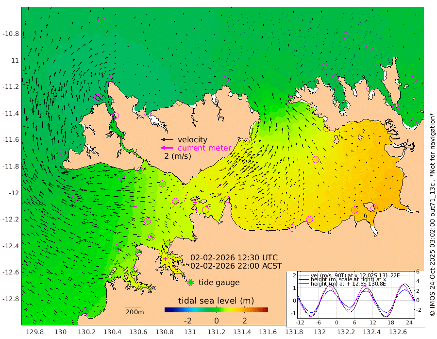 15cm/s -105T +4cm/s rms + 6cm/s 51T. Darwin_C1 52m 22cm/s 85T +4cm/s rms + 7cm/s -161T. Darwin_CW1 22m 7cm/s 90T +4cm/s rms + 8cm/s 61T. Darwin_CW2 34m 28cm/s 27T +3cm/s rms + 9cm/s 98T. Darwin_CW3 22m 51cm/s 93T +5cm/s rms + 7cm/s 88T. Darwin_C3 56m 17cm/s -122T +2cm/s rms + 9cm/s -126T. Darwin_CTbW 22m 56cm/s -82T +1cm/s rms + 1cm/s -47T. DARBGF 30m 62cm/s -52T +4cm/s rms + 3cm/s 80T. NRSDAR 19m -45cm Goodrich Bank 8cm Point Jenny 7cm Native Point 9cm Fish Reef 23cm Tapa Bay -40cm Point Fawcett (Offshore) 45cm Burge Point 6cm Munkunuwa -8cm Beagle A 35cm Parsons Bank 34cm Fenton Patches 52cm Hancox Shoal Area 47cm Nightcliff 62cm Darwin 38cm Charles Point Patches 93cm Glyde Point 157cm Chambers Bay 167cm Point Stuart 102cm Cape Hotham 143cm Christine Reef 191cm West Alligator Head 225cm East Field Island 112cm Two Hills Bay 118cm Camp Point 21cm Medina Inlet South -48cm South Barlow Point -51cm St. Asaph Bay -53cm Cape Van Dieman -50cm Snake Bay -44cm Cache Point -27cm Point Jahleel (Off) 11cm Cape Don -32cm Port Essington -39cm Smith Point - West -35cm NW Peacock Island -40cm North Of Jones Shoal -15cm Peacock Island -20cm Point David -40cm D'urville Point -19cm Copeland Island -19cm One Tree Point