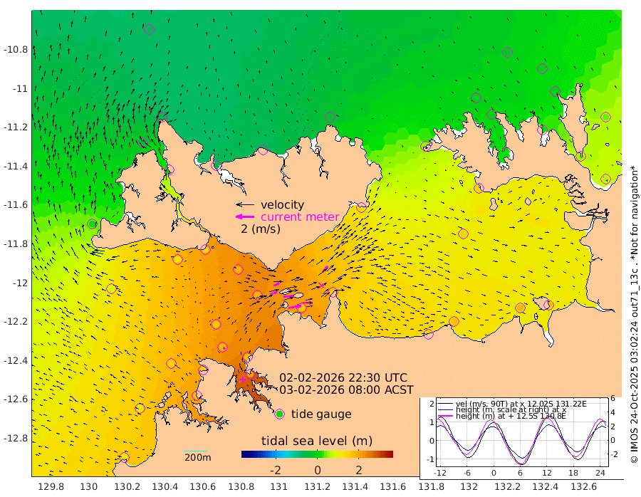 141cm/s 79T +4cm/s rms + 6cm/s 51T. Darwin_C1 52m 106cm/s 92T +4cm/s rms + 7cm/s -161T. Darwin_CW1 22m 79cm/s 70T +4cm/s rms + 8cm/s 61T. Darwin_CW2 34m 91cm/s 44T +3cm/s rms + 9cm/s 98T. Darwin_CW3 22m 118cm/s 89T +5cm/s rms + 7cm/s 88T. Darwin_C3 56m 66cm/s 65T +2cm/s rms + 9cm/s -126T. Darwin_CTbW 22m 11cm/s -51T +1cm/s rms + 1cm/s -47T. DARBGF 30m 24cm/s -43T +4cm/s rms + 3cm/s 80T. NRSDAR 19m -66cm Goodrich Bank 116cm Point Jenny 112cm Native Point 137cm Fish Reef 147cm Tapa Bay 12cm Point Fawcett (Offshore) 173cm Burge Point 134cm Munkunuwa 83cm Beagle A 182cm Parsons Bank 158cm Fenton Patches 183cm Hancox Shoal Area 177cm Nightcliff 205cm Darwin 169cm Charles Point Patches 167cm Glyde Point 163cm Chambers Bay 172cm Point Stuart 158cm Cape Hotham 142cm Christine Reef 185cm West Alligator Head 185cm East Field Island 135cm Two Hills Bay 131cm Camp Point 144cm Medina Inlet South 0cm South Barlow Point -34cm St. Asaph Bay -63cm Cape Van Dieman -56cm Snake Bay -54cm Cache Point -25cm Point Jahleel (Off) 47cm Cape Don 0cm Port Essington -4cm Smith Point - West -1cm NW Peacock Island -30cm North Of Jones Shoal -6cm Peacock Island 50cm Point David 8cm D'urville Point 58cm Copeland Island 40cm One Tree Point
