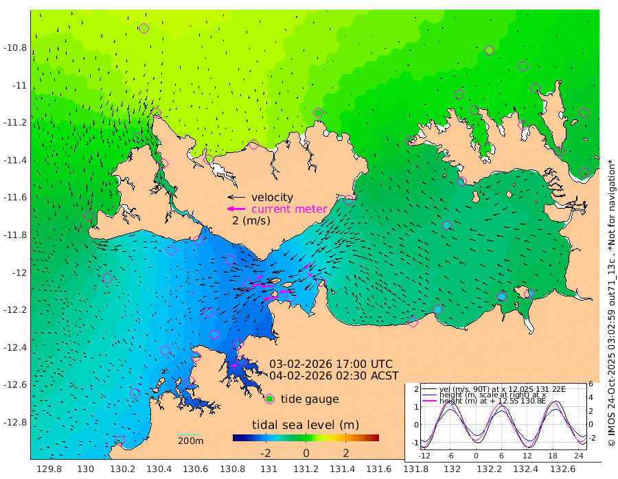 173cm/s -101T +4cm/s rms + 6cm/s 51T. Darwin_C1 52m 135cm/s -91T +4cm/s rms + 7cm/s -161T. Darwin_CW1 22m 86cm/s -106T +4cm/s rms + 8cm/s 61T. Darwin_CW2 34m 96cm/s -136T +3cm/s rms + 9cm/s 98T. Darwin_CW3 22m 136cm/s -91T +5cm/s rms + 7cm/s 88T. Darwin_C3 56m 90cm/s -116T +2cm/s rms + 9cm/s -126T. Darwin_CTbW 22m 11cm/s -127T +1cm/s rms + 1cm/s -47T. DARBGF 30m 10cm/s -131T +4cm/s rms + 3cm/s 80T. NRSDAR 19m 56cm Goodrich Bank -144cm Point Jenny -141cm Native Point -168cm Fish Reef -173cm Tapa Bay -35cm Point Fawcett (Offshore) -199cm Burge Point -169cm Munkunuwa -120cm Beagle A -201cm Parsons Bank -193cm Fenton Patches -198cm Hancox Shoal Area -203cm Nightcliff -222cm Darwin -185cm Charles Point Patches -170cm Glyde Point -151cm Chambers Bay -153cm Point Stuart -151cm Cape Hotham -134cm Christine Reef -168cm West Alligator Head -161cm East Field Island -124cm Two Hills Bay -115cm Camp Point -172cm Medina Inlet South -22cm South Barlow Point 11cm St. Asaph Bay 53cm Cape Van Dieman 48cm Snake Bay 46cm Cache Point 19cm Point Jahleel (Off) -40cm Cape Don 9cm Port Essington 7cm Smith Point - West 11cm NW Peacock Island 36cm North Of Jones Shoal 10cm Peacock Island -14cm Point David 3cm D'urville Point -20cm Copeland Island -10cm One Tree Point