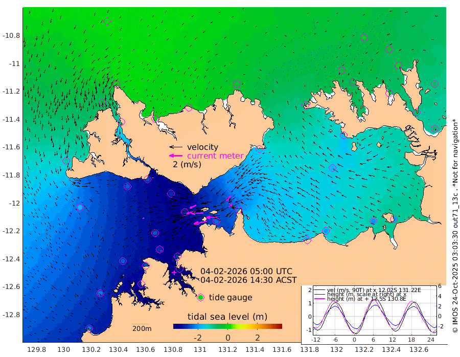 205cm/s -101T +4cm/s rms + 6cm/s 51T. Darwin_C1 52m 160cm/s -91T +4cm/s rms + 7cm/s -161T. Darwin_CW1 22m 113cm/s -106T +4cm/s rms + 8cm/s 61T. Darwin_CW2 34m 110cm/s -135T +3cm/s rms + 9cm/s 98T. Darwin_CW3 22m 185cm/s -91T +5cm/s rms + 7cm/s 88T. Darwin_C3 56m 109cm/s -116T +2cm/s rms + 9cm/s -126T. Darwin_CTbW 22m 21cm/s -115T +1cm/s rms + 1cm/s -47T. DARBGF 30m 14cm/s -115T +4cm/s rms + 3cm/s 80T. NRSDAR 19m 11cm Goodrich Bank -215cm Point Jenny -214cm Native Point -237cm Fish Reef -253cm Tapa Bay -103cm Point Fawcett (Offshore) -276cm Burge Point -239cm Munkunuwa -172cm Beagle A -277cm Parsons Bank -252cm Fenton Patches -271cm Hancox Shoal Area -275cm Nightcliff -311cm Darwin -277cm Charles Point Patches -232cm Glyde Point -196cm Chambers Bay -196cm Point Stuart -204cm Cape Hotham -171cm Christine Reef -209cm West Alligator Head -193cm East Field Island -172cm Two Hills Bay -170cm Camp Point -253cm Medina Inlet South -80cm South Barlow Point -40cm St. Asaph Bay 6cm Cape Van Dieman -6cm Snake Bay 0cm Cache Point -26cm Point Jahleel (Off) -96cm Cape Don -43cm Port Essington -36cm Smith Point - West -34cm NW Peacock Island -13cm North Of Jones Shoal -8cm Peacock Island -72cm Point David -41cm D'urville Point -74cm Copeland Island -69cm One Tree Point