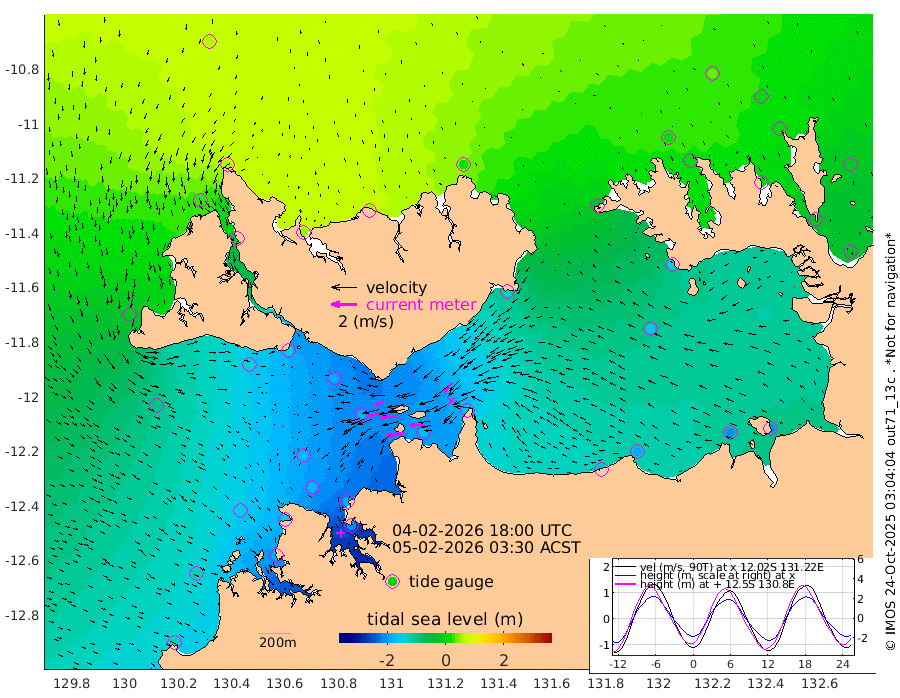 152cm/s -101T +4cm/s rms + 6cm/s 51T. Darwin_C1 52m 116cm/s -92T +4cm/s rms + 7cm/s -161T. Darwin_CW1 22m 75cm/s -106T +4cm/s rms + 8cm/s 61T. Darwin_CW2 34m 95cm/s -136T +3cm/s rms + 9cm/s 98T. Darwin_CW3 22m 132cm/s -91T +5cm/s rms + 7cm/s 88T. Darwin_C3 56m 75cm/s -116T +2cm/s rms + 9cm/s -126T. Darwin_CTbW 22m 12cm/s 133T +1cm/s rms + 1cm/s -47T. DARBGF 30m 20cm/s 154T +4cm/s rms + 3cm/s 80T. NRSDAR 19m 61cm Goodrich Bank -125cm Point Jenny -120cm Native Point -149cm Fish Reef -152cm Tapa Bay -20cm Point Fawcett (Offshore) -182cm Burge Point -144cm Munkunuwa -100cm Beagle A -185cm Parsons Bank -174cm Fenton Patches -186cm Hancox Shoal Area -187cm Nightcliff -209cm Darwin -170cm Charles Point Patches -175cm Glyde Point -179cm Chambers Bay -186cm Point Stuart -165cm Cape Hotham -160cm Christine Reef -206cm West Alligator Head -210cm East Field Island -147cm Two Hills Bay -134cm Camp Point -153cm Medina Inlet South -7cm South Barlow Point 24cm St. Asaph Bay 60cm Cape Van Dieman 54cm Snake Bay 49cm Cache Point 20cm Point Jahleel (Off) -45cm Cape Don 9cm Port Essington 8cm Smith Point - West 11cm NW Peacock Island 34cm North Of Jones Shoal 9cm Peacock Island -16cm Point David 4cm D'urville Point -23cm Copeland Island -14cm One Tree Point