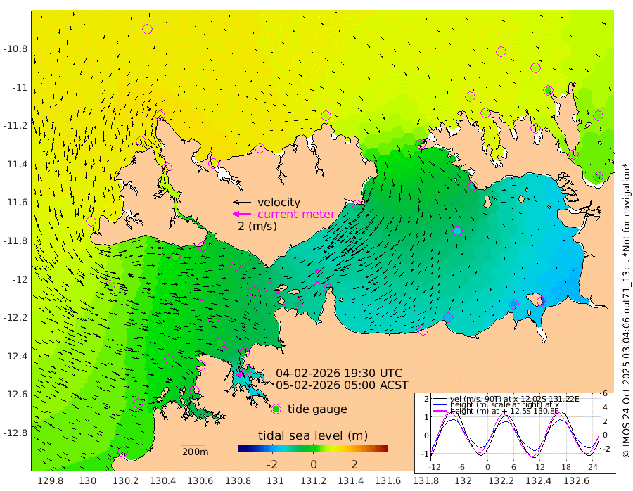 1cm/s -145T +4cm/s rms + 6cm/s 51T. Darwin_C1 52m 4cm/s -30T +4cm/s rms + 7cm/s -161T. Darwin_CW1 22m 6cm/s -113T +4cm/s rms + 8cm/s 61T. Darwin_CW2 34m 48cm/s -146T +3cm/s rms + 9cm/s 98T. Darwin_CW3 22m 38cm/s -88T +5cm/s rms + 7cm/s 88T. Darwin_C3 56m 17cm/s 58T +2cm/s rms + 9cm/s -126T. Darwin_CTbW 22m 62cm/s 97T +1cm/s rms + 1cm/s -47T. DARBGF 30m 66cm/s 128T +4cm/s rms + 3cm/s 80T. NRSDAR 19m 91cm Goodrich Bank 27cm Point Jenny 31cm Native Point 15cm Fish Reef 16cm Tapa Bay 86cm Point Fawcett (Offshore) -11cm Burge Point 27cm Munkunuwa 37cm Beagle A -12cm Parsons Bank -11cm Fenton Patches -27cm Hancox Shoal Area -16cm Nightcliff -29cm Darwin 4cm Charles Point Patches -76cm Glyde Point -150cm Chambers Bay -172cm Point Stuart -94cm Cape Hotham -137cm Christine Reef -199cm West Alligator Head -236cm East Field Island -109cm Two Hills Bay -98cm Camp Point 16cm Medina Inlet South 90cm South Barlow Point 97cm St. Asaph Bay 98cm Cape Van Dieman 97cm Snake Bay 85cm Cache Point 61cm Point Jahleel (Off) 13cm Cape Don 60cm Port Essington 60cm Smith Point - West 56cm NW Peacock Island 73cm North Of Jones Shoal 25cm Peacock Island 36cm Point David 58cm D'urville Point 29cm Copeland Island 38cm One Tree Point