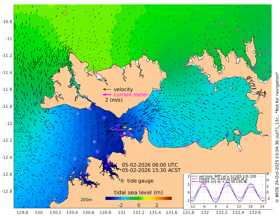 163cm/s -101T +4cm/s rms + 6cm/s 51T. Darwin_C1 52m 123cm/s -91T +4cm/s rms + 7cm/s -161T. Darwin_CW1 22m 90cm/s -106T +4cm/s rms + 8cm/s 61T. Darwin_CW2 34m 96cm/s -135T +3cm/s rms + 9cm/s 98T. Darwin_CW3 22m 160cm/s -91T +5cm/s rms + 7cm/s 88T. Darwin_C3 56m 82cm/s -116T +2cm/s rms + 9cm/s -126T. Darwin_CTbW 22m 10cm/s 157T +1cm/s rms + 1cm/s -47T. DARBGF 30m 19cm/s 159T +4cm/s rms + 3cm/s 80T. NRSDAR 19m 41cm Goodrich Bank -151cm Point Jenny -150cm Native Point -173cm Fish Reef -189cm Tapa Bay -50cm Point Fawcett (Offshore) -208cm Burge Point -177cm Munkunuwa -108cm Beagle A -217cm Parsons Bank -185cm Fenton Patches -216cm Hancox Shoal Area -212cm Nightcliff -249cm Darwin -211cm Charles Point Patches -197cm Glyde Point -190cm Chambers Bay -197cm Point Stuart -182cm Cape Hotham -163cm Christine Reef -215cm West Alligator Head -209cm East Field Island -162cm Two Hills Bay -154cm Camp Point -189cm Medina Inlet South -31cm South Barlow Point 4cm St. Asaph Bay 38cm Cape Van Dieman 27cm Snake Bay 31cm Cache Point 3cm Point Jahleel (Off) -69cm Cape Don -15cm Port Essington -8cm Smith Point - West -8cm NW Peacock Island 13cm North Of Jones Shoal 2cm Peacock Island -51cm Point David -14cm D'urville Point -54cm Copeland Island -46cm One Tree Point