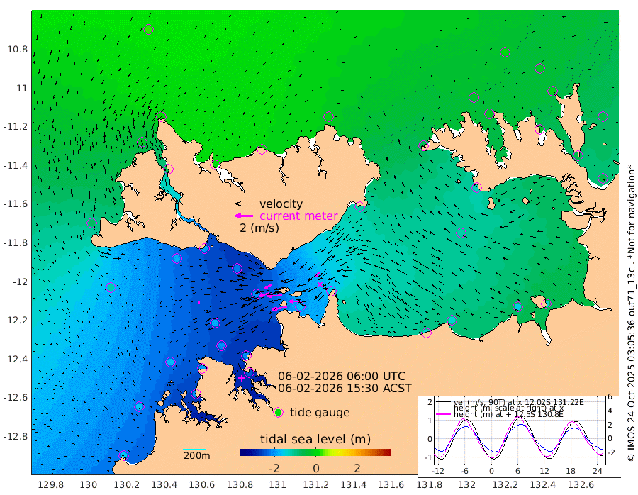 170cm/s -101T +4cm/s rms + 6cm/s 51T. Darwin_C1 52m 127cm/s -90T +4cm/s rms + 7cm/s -161T. Darwin_CW1 22m 102cm/s -106T +4cm/s rms + 8cm/s 61T. Darwin_CW2 34m 85cm/s -134T +3cm/s rms + 9cm/s 98T. Darwin_CW3 22m 168cm/s -91T +5cm/s rms + 7cm/s 88T. Darwin_C3 56m 90cm/s -115T +2cm/s rms + 9cm/s -126T. Darwin_CTbW 22m 20cm/s -110T +1cm/s rms + 1cm/s -47T. DARBGF 30m 15cm/s -106T +4cm/s rms + 3cm/s 80T. NRSDAR 19m 23cm Goodrich Bank -159cm Point Jenny -159cm Native Point -179cm Fish Reef -194cm Tapa Bay -69cm Point Fawcett (Offshore) -206cm Burge Point -189cm Munkunuwa -119cm Beagle A -218cm Parsons Bank -187cm Fenton Patches -211cm Hancox Shoal Area -211cm Nightcliff -244cm Darwin -214cm Charles Point Patches -175cm Glyde Point -143cm Chambers Bay -143cm Point Stuart -151cm Cape Hotham -119cm Christine Reef -153cm West Alligator Head -135cm East Field Island -126cm Two Hills Bay -119cm Camp Point -197cm Medina Inlet South -54cm South Barlow Point -18cm St. Asaph Bay 18cm Cape Van Dieman 7cm Snake Bay 16cm Cache Point -8cm Point Jahleel (Off) -66cm Cape Don -25cm Port Essington -20cm Smith Point - West -17cm NW Peacock Island 1cm North Of Jones Shoal -2cm Peacock Island -51cm Point David -25cm D'urville Point -53cm Copeland Island -48cm One Tree Point