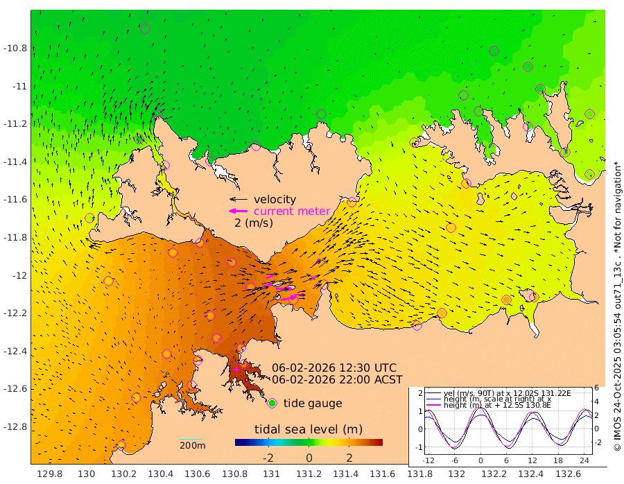 170cm/s 79T +4cm/s rms + 6cm/s 51T. Darwin_C1 52m 120cm/s 93T +4cm/s rms + 7cm/s -161T. Darwin_CW1 22m 111cm/s 72T +4cm/s rms + 8cm/s 61T. Darwin_CW2 34m 101cm/s 46T +3cm/s rms + 9cm/s 98T. Darwin_CW3 22m 180cm/s 89T +5cm/s rms + 7cm/s 88T. Darwin_C3 56m 83cm/s 65T +2cm/s rms + 9cm/s -126T. Darwin_CTbW 22m 12cm/s 39T +1cm/s rms + 1cm/s -47T. DARBGF 30m 13cm/s -7T +4cm/s rms + 3cm/s 80T. NRSDAR 19m -21cm Goodrich Bank 164cm Point Jenny 163cm Native Point 189cm Fish Reef 194cm Tapa Bay 66cm Point Fawcett (Offshore) 219cm Burge Point 185cm Munkunuwa 138cm Beagle A 222cm Parsons Bank 208cm Fenton Patches 216cm Hancox Shoal Area 221cm Nightcliff 253cm Darwin 217cm Charles Point Patches 196cm Glyde Point 176cm Chambers Bay 178cm Point Stuart 173cm Cape Hotham 155cm Christine Reef 194cm West Alligator Head 187cm East Field Island 153cm Two Hills Bay 143cm Camp Point 200cm Medina Inlet South 54cm South Barlow Point 18cm St. Asaph Bay -19cm Cape Van Dieman -8cm Snake Bay -12cm Cache Point 13cm Point Jahleel (Off) 75cm Cape Don 25cm Port Essington 23cm Smith Point - West 20cm NW Peacock Island -1cm North Of Jones Shoal 2cm Peacock Island 43cm Point David 27cm D'urville Point 46cm Copeland Island 44cm One Tree Point
