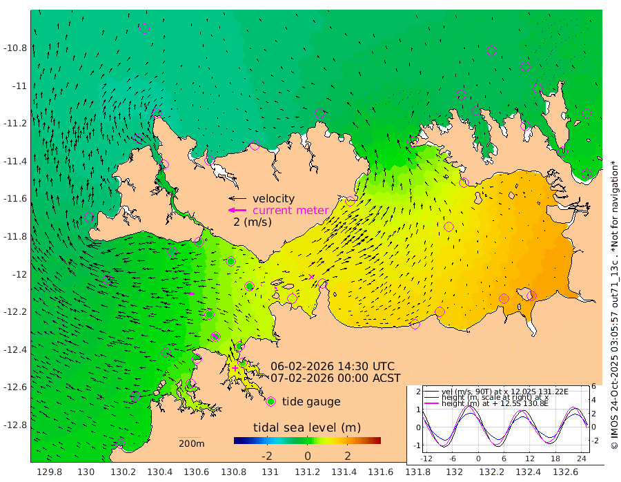 7cm/s -107T +4cm/s rms + 6cm/s 51T. Darwin_C1 52m 6cm/s -78T +4cm/s rms + 7cm/s -161T. Darwin_CW1 22m 2cm/s -115T +4cm/s rms + 8cm/s 61T. Darwin_CW2 34m 23cm/s 36T +3cm/s rms + 9cm/s 98T. Darwin_CW3 22m 24cm/s 97T +5cm/s rms + 7cm/s 88T. Darwin_C3 56m 8cm/s -119T +2cm/s rms + 9cm/s -126T. Darwin_CTbW 22m 63cm/s -84T +1cm/s rms + 1cm/s -47T. DARBGF 30m 72cm/s -53T +4cm/s rms + 3cm/s 80T. NRSDAR 19m -82cm Goodrich Bank -34cm Point Jenny -36cm Native Point -22cm Fish Reef -22cm Tapa Bay -83cm Point Fawcett (Offshore) -1cm Burge Point -36cm Munkunuwa -49cm Beagle A 4cm Parsons Bank -6cm Fenton Patches 16cm Hancox Shoal Area -1cm Nightcliff 23cm Darwin -8cm Charles Point Patches 75cm Glyde Point 150cm Chambers Bay 178cm Point Stuart 93cm Cape Hotham 133cm Christine Reef 205cm West Alligator Head 241cm East Field Island 114cm Two Hills Bay 103cm Camp Point -21cm Medina Inlet South -89cm South Barlow Point -96cm St. Asaph Bay -88cm Cape Van Dieman -85cm Snake Bay -77cm Cache Point -54cm Point Jahleel (Off) -3cm Cape Don -47cm Port Essington -53cm Smith Point - West -47cm NW Peacock Island -65cm North Of Jones Shoal -21cm Peacock Island -20cm Point David -49cm D'urville Point -15cm Copeland Island -22cm One Tree Point