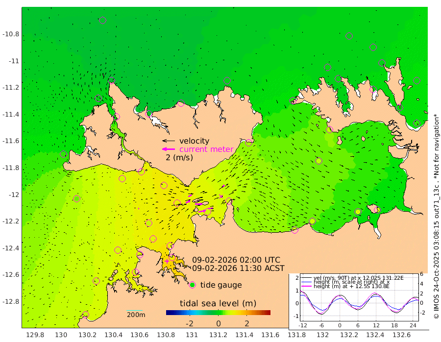 114cm/s 79T +4cm/s rms + 6cm/s 51T. Darwin_C1 52m 79cm/s 93T +4cm/s rms + 7cm/s -161T. Darwin_CW1 22m 70cm/s 72T +4cm/s rms + 8cm/s 61T. Darwin_CW2 34m 57cm/s 49T +3cm/s rms + 9cm/s 98T. Darwin_CW3 22m 116cm/s 89T +5cm/s rms + 7cm/s 88T. Darwin_C3 56m 59cm/s 66T +2cm/s rms + 9cm/s -126T. Darwin_CTbW 22m 9cm/s 61T +1cm/s rms + 1cm/s -47T. DARBGF 30m 7cm/s 5T +4cm/s rms + 3cm/s 80T. NRSDAR 19m -28cm Goodrich Bank 71cm Point Jenny 68cm Native Point 80cm Fish Reef 92cm Tapa Bay 28cm Point Fawcett (Offshore) 83cm Burge Point 86cm Munkunuwa 42cm Beagle A 101cm Parsons Bank 77cm Fenton Patches 106cm Hancox Shoal Area 106cm Nightcliff 113cm Darwin 95cm Charles Point Patches 87cm Glyde Point 90cm Chambers Bay 89cm Point Stuart 83cm Cape Hotham 74cm Christine Reef 100cm West Alligator Head 91cm East Field Island 77cm Two Hills Bay 60cm Camp Point 89cm Medina Inlet South 11cm South Barlow Point -2cm St. Asaph Bay -26cm Cape Van Dieman -21cm Snake Bay -21cm Cache Point -4cm Point Jahleel (Off) 29cm Cape Don 2cm Port Essington 5cm Smith Point - West 1cm NW Peacock Island -5cm North Of Jones Shoal 0cm Peacock Island 20cm Point David 6cm D'urville Point 23cm Copeland Island 19cm One Tree Point