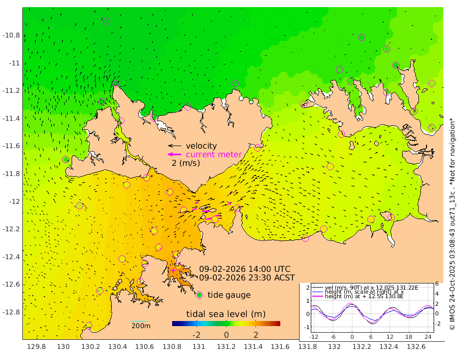 92cm/s 78T +4cm/s rms + 6cm/s 51T. Darwin_C1 52m 60cm/s 91T +4cm/s rms + 7cm/s -161T. Darwin_CW1 22m 60cm/s 73T +4cm/s rms + 8cm/s 61T. Darwin_CW2 34m 56cm/s 44T +3cm/s rms + 9cm/s 98T. Darwin_CW3 22m 106cm/s 90T +5cm/s rms + 7cm/s 88T. Darwin_C3 56m 49cm/s 65T +2cm/s rms + 9cm/s -126T. Darwin_CTbW 22m 6cm/s -23T +1cm/s rms + 1cm/s -47T. DARBGF 30m 13cm/s -28T +4cm/s rms + 3cm/s 80T. NRSDAR 19m -13cm Goodrich Bank 79cm Point Jenny 77cm Native Point 94cm Fish Reef 96cm Tapa Bay 29cm Point Fawcett (Offshore) 109cm Burge Point 85cm Munkunuwa 62cm Beagle A 120cm Parsons Bank 102cm Fenton Patches 118cm Hancox Shoal Area 121cm Nightcliff 138cm Darwin 115cm Charles Point Patches 115cm Glyde Point 116cm Chambers Bay 118cm Point Stuart 108cm Cape Hotham 102cm Christine Reef 127cm West Alligator Head 127cm East Field Island 104cm Two Hills Bay 93cm Camp Point 103cm Medina Inlet South 27cm South Barlow Point 3cm St. Asaph Bay -12cm Cape Van Dieman 1cm Snake Bay -5cm Cache Point 12cm Point Jahleel (Off) 55cm Cape Don 26cm Port Essington 25cm Smith Point - West 27cm NW Peacock Island 15cm North Of Jones Shoal 8cm Peacock Island 50cm Point David 32cm D'urville Point 52cm Copeland Island 52cm One Tree Point