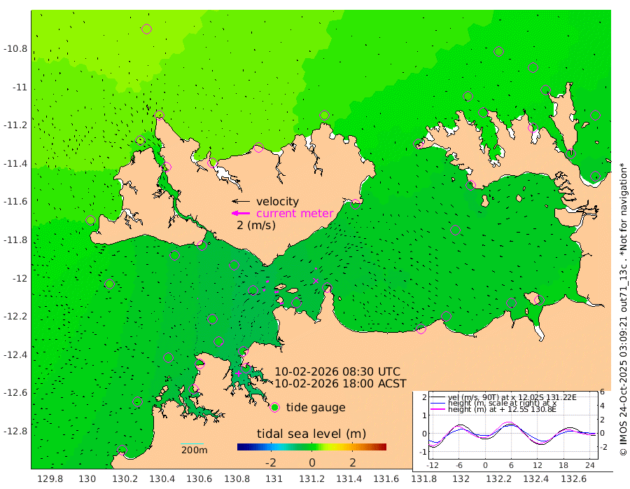39cm/s -101T +4cm/s rms + 6cm/s 51T. Darwin_C1 52m 15cm/s -91T +4cm/s rms + 7cm/s -161T. Darwin_CW1 22m 25cm/s -107T +4cm/s rms + 8cm/s 61T. Darwin_CW2 34m 15cm/s -128T +3cm/s rms + 9cm/s 98T. Darwin_CW3 22m 41cm/s -92T +5cm/s rms + 7cm/s 88T. Darwin_C3 56m 28cm/s -115T +2cm/s rms + 9cm/s -126T. Darwin_CTbW 22m 6cm/s 103T +1cm/s rms + 1cm/s -47T. DARBGF 30m 9cm/s 152T +4cm/s rms + 3cm/s 80T. NRSDAR 19m 52cm Goodrich Bank 15cm Point Jenny 16cm Native Point 11cm Fish Reef 6cm Tapa Bay 41cm Point Fawcett (Offshore) 10cm Burge Point 4cm Munkunuwa 34cm Beagle A -13cm Parsons Bank 12cm Fenton Patches -14cm Hancox Shoal Area -8cm Nightcliff -13cm Darwin 2cm Charles Point Patches -12cm Glyde Point -26cm Chambers Bay -28cm Point Stuart -13cm Cape Hotham -18cm Christine Reef -34cm West Alligator Head -32cm East Field Island -18cm Two Hills Bay -7cm Camp Point 4cm Medina Inlet South 37cm South Barlow Point 49cm St. Asaph Bay 51cm Cape Van Dieman 47cm Snake Bay 50cm Cache Point 37cm Point Jahleel (Off) 10cm Cape Don 23cm Port Essington 22cm Smith Point - West 21cm NW Peacock Island 32cm North Of Jones Shoal 9cm Peacock Island 0cm Point David 16cm D'urville Point -4cm Copeland Island 3cm One Tree Point