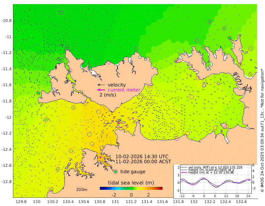 68cm/s 78T +4cm/s rms + 6cm/s 51T. Darwin_C1 52m 38cm/s 89T +4cm/s rms + 7cm/s -161T. Darwin_CW1 22m 41cm/s 74T +4cm/s rms + 8cm/s 61T. Darwin_CW2 34m 40cm/s 44T +3cm/s rms + 9cm/s 98T. Darwin_CW3 22m 73cm/s 90T +5cm/s rms + 7cm/s 88T. Darwin_C3 56m 41cm/s 65T +2cm/s rms + 9cm/s -126T. Darwin_CTbW 22m 5cm/s -42T +1cm/s rms + 1cm/s -47T. DARBGF 30m 11cm/s -32T +4cm/s rms + 3cm/s 80T. NRSDAR 19m -7cm Goodrich Bank 53cm Point Jenny 51cm Native Point 62cm Fish Reef 65cm Tapa Bay 20cm Point Fawcett (Offshore) 73cm Burge Point 54cm Munkunuwa 39cm Beagle A 85cm Parsons Bank 68cm Fenton Patches 85cm Hancox Shoal Area 88cm Nightcliff 98cm Darwin 80cm Charles Point Patches 85cm Glyde Point 89cm Chambers Bay 91cm Point Stuart 82cm Cape Hotham 79cm Christine Reef 98cm West Alligator Head 98cm East Field Island 82cm Two Hills Bay 72cm Camp Point 70cm Medina Inlet South 20cm South Barlow Point 1cm St. Asaph Bay -7cm Cape Van Dieman 5cm Snake Bay -1cm Cache Point 12cm Point Jahleel (Off) 46cm Cape Don 25cm Port Essington 25cm Smith Point - West 28cm NW Peacock Island 19cm North Of Jones Shoal 9cm Peacock Island 50cm Point David 32cm D'urville Point 52cm Copeland Island 51cm One Tree Point