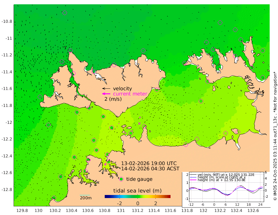 29cm/s 78T +4cm/s rms + 6cm/s 51T. Darwin_C1 52m 32cm/s 90T +4cm/s rms + 7cm/s -161T. Darwin_CW1 22m 7cm/s 67T +4cm/s rms + 8cm/s 61T. Darwin_CW2 34m 27cm/s 34T +3cm/s rms + 9cm/s 98T. Darwin_CW3 22m 12cm/s 92T +5cm/s rms + 7cm/s 88T. Darwin_C3 56m 13cm/s 67T +2cm/s rms + 9cm/s -126T. Darwin_CTbW 22m 4cm/s -86T +1cm/s rms + 1cm/s -47T. DARBGF 30m 3cm/s -46T +4cm/s rms + 3cm/s 80T. NRSDAR 19m -43cm Goodrich Bank 0cm Point Jenny -1cm Native Point 11cm Fish Reef 9cm Tapa Bay -21cm Point Fawcett (Offshore) 12cm Burge Point 1cm Munkunuwa -7cm Beagle A 17cm Parsons Bank 12cm Fenton Patches 21cm Hancox Shoal Area 25cm Nightcliff 25cm Darwin 13cm Charles Point Patches 29cm Glyde Point 39cm Chambers Bay 47cm Point Stuart 35cm Cape Hotham 26cm Christine Reef 51cm West Alligator Head 56cm East Field Island 32cm Two Hills Bay 30cm Camp Point 9cm Medina Inlet South -27cm South Barlow Point -36cm St. Asaph Bay -40cm Cape Van Dieman -35cm Snake Bay -37cm Cache Point -26cm Point Jahleel (Off) 0cm Cape Don -15cm Port Essington -19cm Smith Point - West -15cm NW Peacock Island -20cm North Of Jones Shoal -4cm Peacock Island 13cm Point David -12cm D'urville Point 16cm Copeland Island 10cm One Tree Point