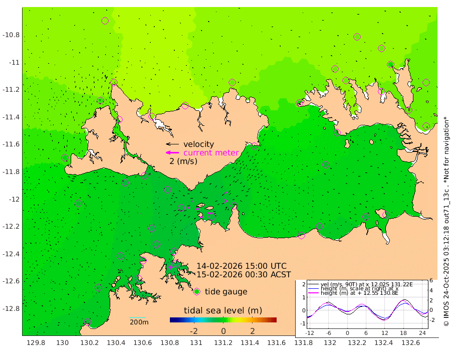 50cm/s -100T +4cm/s rms + 6cm/s 51T. Darwin_C1 52m 72cm/s -91T +4cm/s rms + 7cm/s -161T. Darwin_CW1 22m 29cm/s -107T +4cm/s rms + 8cm/s 61T. Darwin_CW2 34m 35cm/s -137T +3cm/s rms + 9cm/s 98T. Darwin_CW3 22m 49cm/s -92T +5cm/s rms + 7cm/s 88T. Darwin_C3 56m 19cm/s -113T +2cm/s rms + 9cm/s -126T. Darwin_CTbW 22m 4cm/s -128T +1cm/s rms + 1cm/s -47T. DARBGF 30m 4cm/s -107T +4cm/s rms + 3cm/s 80T. NRSDAR 19m 46cm Goodrich Bank -29cm Point Jenny -26cm Native Point -42cm Fish Reef -36cm Tapa Bay 7cm Point Fawcett (Offshore) -47cm Burge Point -42cm Munkunuwa -23cm Beagle A -41cm Parsons Bank -47cm Fenton Patches -41cm Hancox Shoal Area -52cm Nightcliff -52cm Darwin -40cm Charles Point Patches -35cm Glyde Point -35cm Chambers Bay -33cm Point Stuart -29cm Cape Hotham -26cm Christine Reef -40cm West Alligator Head -41cm East Field Island -18cm Two Hills Bay -18cm Camp Point -41cm Medina Inlet South 17cm South Barlow Point 24cm St. Asaph Bay 46cm Cape Van Dieman 49cm Snake Bay 44cm Cache Point 35cm Point Jahleel (Off) 15cm Cape Don 36cm Port Essington 36cm Smith Point - West 42cm NW Peacock Island 40cm North Of Jones Shoal 14cm Peacock Island 44cm Point David 40cm D'urville Point 40cm Copeland Island 39cm One Tree Point