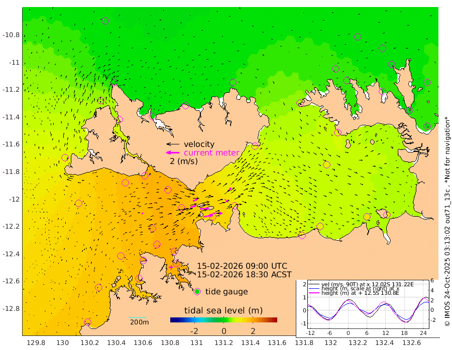 146cm/s 78T +4cm/s rms + 6cm/s 51T. Darwin_C1 52m 136cm/s 92T +4cm/s rms + 7cm/s -161T. Darwin_CW1 22m 92cm/s 72T +4cm/s rms + 8cm/s 61T. Darwin_CW2 34m 86cm/s 45T +3cm/s rms + 9cm/s 98T. Darwin_CW3 22m 141cm/s 89T +5cm/s rms + 7cm/s 88T. Darwin_C3 56m 77cm/s 66T +2cm/s rms + 9cm/s -126T. Darwin_CTbW 22m 25cm/s 74T +1cm/s rms + 1cm/s -47T. DARBGF 30m 14cm/s 100T +4cm/s rms + 3cm/s 80T. NRSDAR 19m 17cm Goodrich Bank 169cm Point Jenny 168cm Native Point 180cm Fish Reef 188cm Tapa Bay 98cm Point Fawcett (Offshore) 200cm Burge Point 170cm Munkunuwa 154cm Beagle A 181cm Parsons Bank 197cm Fenton Patches 185cm Hancox Shoal Area 203cm Nightcliff 213cm Darwin 201cm Charles Point Patches 158cm Glyde Point 132cm Chambers Bay 117cm Point Stuart 129cm Cape Hotham 119cm Christine Reef 125cm West Alligator Head 120cm East Field Island 104cm Two Hills Bay 114cm Camp Point 185cm Medina Inlet South 76cm South Barlow Point 59cm St. Asaph Bay 17cm Cape Van Dieman 19cm Snake Bay 22cm Cache Point 32cm Point Jahleel (Off) 64cm Cape Don 29cm Port Essington 28cm Smith Point - West 19cm NW Peacock Island 18cm North Of Jones Shoal 6cm Peacock Island 15cm Point David 22cm D'urville Point 15cm Copeland Island 21cm One Tree Point