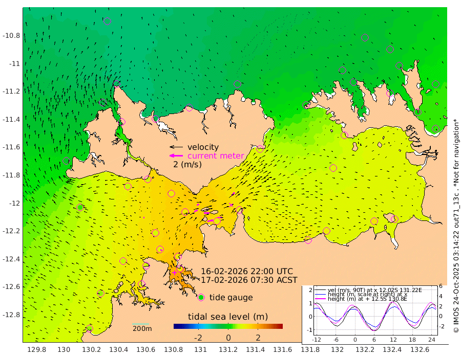 82cm/s 80T +4cm/s rms + 6cm/s 51T. Darwin_C1 52m 68cm/s 93T +4cm/s rms + 7cm/s -161T. Darwin_CW1 22m 55cm/s 68T +4cm/s rms + 8cm/s 61T. Darwin_CW2 34m 62cm/s 42T +3cm/s rms + 9cm/s 98T. Darwin_CW3 22m 83cm/s 89T +5cm/s rms + 7cm/s 88T. Darwin_C3 56m 36cm/s 65T +2cm/s rms + 9cm/s -126T. Darwin_CTbW 22m 16cm/s -70T +1cm/s rms + 1cm/s -47T. DARBGF 30m 27cm/s -49T +4cm/s rms + 3cm/s 80T. NRSDAR 19m -73cm Goodrich Bank 51cm Point Jenny 49cm Native Point 68cm Fish Reef 82cm Tapa Bay -22cm Point Fawcett (Offshore) 91cm Burge Point 70cm Munkunuwa 25cm Beagle A 104cm Parsons Bank 85cm Fenton Patches 114cm Hancox Shoal Area 113cm Nightcliff 128cm Darwin 98cm Charles Point Patches 107cm Glyde Point 118cm Chambers Bay 122cm Point Stuart 105cm Cape Hotham 92cm Christine Reef 134cm West Alligator Head 140cm East Field Island 88cm Two Hills Bay 90cm Camp Point 79cm Medina Inlet South -30cm South Barlow Point -52cm St. Asaph Bay -72cm Cape Van Dieman -63cm Snake Bay -68cm Cache Point -41cm Point Jahleel (Off) 10cm Cape Don -27cm Port Essington -31cm Smith Point - West -27cm NW Peacock Island -43cm North Of Jones Shoal -12cm Peacock Island 18cm Point David -22cm D'urville Point 24cm Copeland Island 9cm One Tree Point