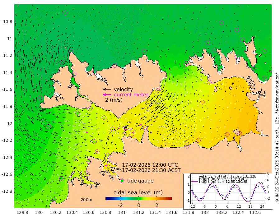 20cm/s 80T +4cm/s rms + 6cm/s 51T. Darwin_C1 52m 46cm/s 88T +4cm/s rms + 7cm/s -161T. Darwin_CW1 22m 31cm/s 73T +4cm/s rms + 8cm/s 61T. Darwin_CW2 34m 39cm/s 40T +3cm/s rms + 9cm/s 98T. Darwin_CW3 22m 76cm/s 91T +5cm/s rms + 7cm/s 88T. Darwin_C3 56m 6cm/s 81T +2cm/s rms + 9cm/s -126T. Darwin_CTbW 22m 44cm/s -79T +1cm/s rms + 1cm/s -47T. DARBGF 30m 57cm/s -51T +4cm/s rms + 3cm/s 80T. NRSDAR 19m -42cm Goodrich Bank 24cm Point Jenny 22cm Native Point 37cm Fish Reef 41cm Tapa Bay -23cm Point Fawcett (Offshore) 61cm Burge Point 25cm Munkunuwa 7cm Beagle A 57cm Parsons Bank 51cm Fenton Patches 70cm Hancox Shoal Area 65cm Nightcliff 90cm Darwin 69cm Charles Point Patches 105cm Glyde Point 156cm Chambers Bay 163cm Point Stuart 107cm Cape Hotham 136cm Christine Reef 185cm West Alligator Head 213cm East Field Island 115cm Two Hills Bay 117cm Camp Point 48cm Medina Inlet South -32cm South Barlow Point -40cm St. Asaph Bay -49cm Cape Van Dieman -44cm Snake Bay -39cm Cache Point -22cm Point Jahleel (Off) 23cm Cape Don -18cm Port Essington -26cm Smith Point - West -25cm NW Peacock Island -27cm North Of Jones Shoal -10cm Peacock Island -13cm Point David -27cm D'urville Point -10cm Copeland Island -6cm One Tree Point