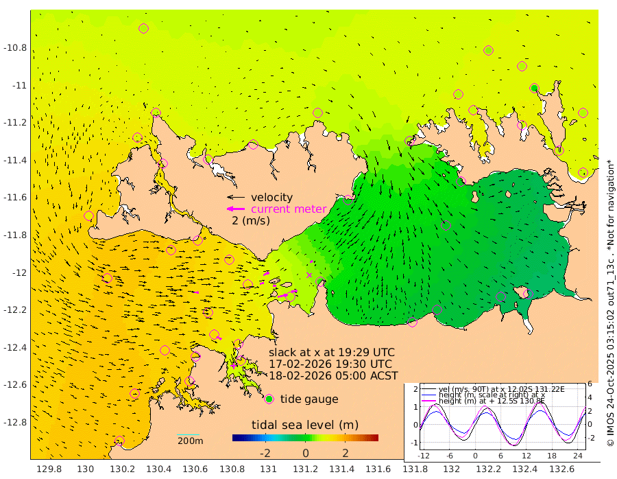 112cm/s 78T +4cm/s rms + 6cm/s 51T. Darwin_C1 52m 69cm/s 84T +4cm/s rms + 7cm/s -161T. Darwin_CW1 22m 44cm/s 75T +4cm/s rms + 8cm/s 61T. Darwin_CW2 34m 32cm/s 59T +3cm/s rms + 9cm/s 98T. Darwin_CW3 22m 36cm/s 86T +5cm/s rms + 7cm/s 88T. Darwin_C3 56m 73cm/s 62T +2cm/s rms + 9cm/s -126T. Darwin_CTbW 22m 59cm/s 92T +1cm/s rms + 1cm/s -47T. DARBGF 30m 61cm/s 121T +4cm/s rms + 3cm/s 80T. NRSDAR 19m 60cm Goodrich Bank 145cm Point Jenny 147cm Native Point 137cm Fish Reef 153cm Tapa Bay 112cm Point Fawcett (Offshore) 143cm Burge Point 145cm Munkunuwa 135cm Beagle A 141cm Parsons Bank 142cm Fenton Patches 131cm Hancox Shoal Area 140cm Nightcliff 137cm Darwin 145cm Charles Point Patches 63cm Glyde Point -18cm Chambers Bay -39cm Point Stuart 31cm Cape Hotham -12cm Christine Reef -56cm West Alligator Head -93cm East Field Island -2cm Two Hills Bay 10cm Camp Point 139cm Medina Inlet South 108cm South Barlow Point 91cm St. Asaph Bay 69cm Cape Van Dieman 71cm Snake Bay 63cm Cache Point 58cm Point Jahleel (Off) 56cm Cape Don 67cm Port Essington 70cm Smith Point - West 67cm NW Peacock Island 55cm North Of Jones Shoal 21cm Peacock Island 76cm Point David 75cm D'urville Point 74cm Copeland Island 66cm One Tree Point