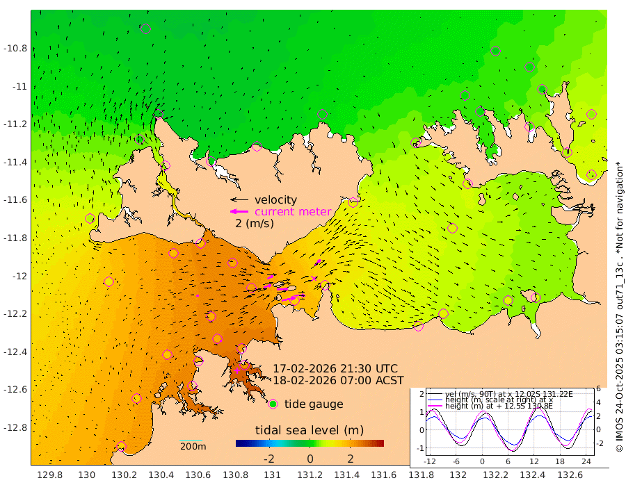 156cm/s 78T +4cm/s rms + 6cm/s 51T. Darwin_C1 52m 107cm/s 92T +4cm/s rms + 7cm/s -161T. Darwin_CW1 22m 87cm/s 72T +4cm/s rms + 8cm/s 61T. Darwin_CW2 34m 94cm/s 43T +3cm/s rms + 9cm/s 98T. Darwin_CW3 22m 126cm/s 89T +5cm/s rms + 7cm/s 88T. Darwin_C3 56m 74cm/s 65T +2cm/s rms + 9cm/s -126T. Darwin_CTbW 22m 25cm/s 80T +1cm/s rms + 1cm/s -47T. DARBGF 30m 22cm/s 102T +4cm/s rms + 3cm/s 80T. NRSDAR 19m -25cm Goodrich Bank 154cm Point Jenny 154cm Native Point 163cm Fish Reef 188cm Tapa Bay 59cm Point Fawcett (Offshore) 193cm Burge Point 170cm Munkunuwa 123cm Beagle A 200cm Parsons Bank 187cm Fenton Patches 204cm Hancox Shoal Area 211cm Nightcliff 222cm Darwin 198cm Charles Point Patches 155cm Glyde Point 117cm Chambers Bay 106cm Point Stuart 131cm Cape Hotham 101cm Christine Reef 110cm West Alligator Head 94cm East Field Island 96cm Two Hills Bay 104cm Camp Point 176cm Medina Inlet South 48cm South Barlow Point 17cm St. Asaph Bay -19cm Cape Van Dieman -10cm Snake Bay -18cm Cache Point 4cm Point Jahleel (Off) 52cm Cape Don 19cm Port Essington 19cm Smith Point - West 19cm NW Peacock Island -3cm North Of Jones Shoal 2cm Peacock Island 59cm Point David 28cm D'urville Point 64cm Copeland Island 48cm One Tree Point