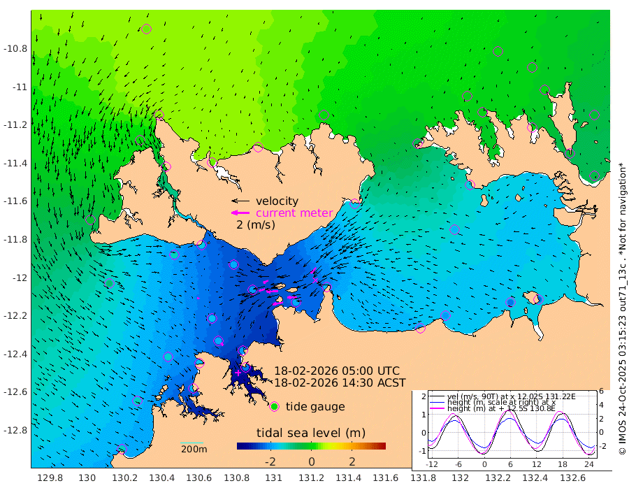 121cm/s -101T +4cm/s rms + 6cm/s 51T. Darwin_C1 52m 102cm/s -93T +4cm/s rms + 7cm/s -161T. Darwin_CW1 22m 68cm/s -106T +4cm/s rms + 8cm/s 61T. Darwin_CW2 34m 88cm/s -138T +3cm/s rms + 9cm/s 98T. Darwin_CW3 22m 128cm/s -90T +5cm/s rms + 7cm/s 88T. Darwin_C3 56m 60cm/s -116T +2cm/s rms + 9cm/s -126T. Darwin_CTbW 22m 24cm/s 114T +1cm/s rms + 1cm/s -47T. DARBGF 30m 34cm/s 140T +4cm/s rms + 3cm/s 80T. NRSDAR 19m 45cm Goodrich Bank -125cm Point Jenny -124cm Native Point -137cm Fish Reef -162cm Tapa Bay -23cm Point Fawcett (Offshore) -177cm Burge Point -133cm Munkunuwa -87cm Beagle A -182cm Parsons Bank -164cm Fenton Patches -196cm Hancox Shoal Area -193cm Nightcliff -221cm Darwin -190cm Charles Point Patches -188cm Glyde Point -203cm Chambers Bay -200cm Point Stuart -173cm Cape Hotham -177cm Christine Reef -218cm West Alligator Head -228cm East Field Island -156cm Two Hills Bay -166cm Camp Point -156cm Medina Inlet South -10cm South Barlow Point 18cm St. Asaph Bay 46cm Cape Van Dieman 36cm Snake Bay 38cm Cache Point 10cm Point Jahleel (Off) -60cm Cape Don -7cm Port Essington 0cm Smith Point - West -3cm NW Peacock Island 18cm North Of Jones Shoal 4cm Peacock Island -44cm Point David -7cm D'urville Point -49cm Copeland Island -39cm One Tree Point