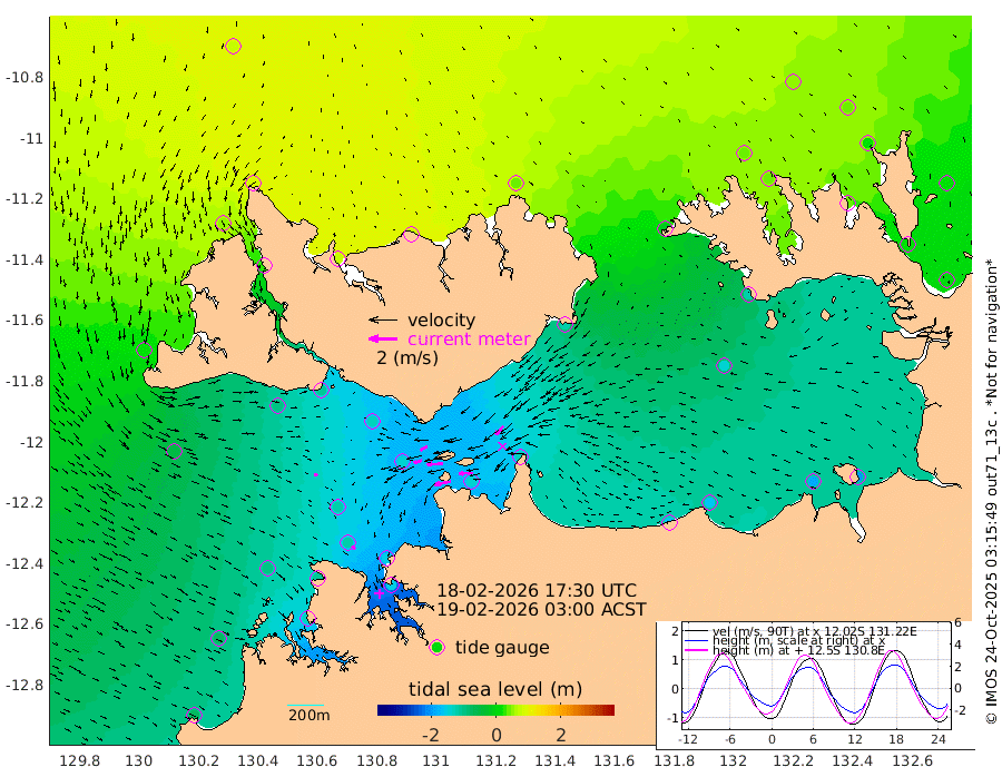 116cm/s -100T +4cm/s rms + 6cm/s 51T. Darwin_C1 52m 95cm/s -92T +4cm/s rms + 7cm/s -161T. Darwin_CW1 22m 59cm/s -106T +4cm/s rms + 8cm/s 61T. Darwin_CW2 34m 82cm/s -137T +3cm/s rms + 9cm/s 98T. Darwin_CW3 22m 110cm/s -91T +5cm/s rms + 7cm/s 88T. Darwin_C3 56m 56cm/s -116T +2cm/s rms + 9cm/s -126T. Darwin_CTbW 22m 25cm/s 109T +1cm/s rms + 1cm/s -47T. DARBGF 30m 33cm/s 140T +4cm/s rms + 3cm/s 80T. NRSDAR 19m 79cm Goodrich Bank -72cm Point Jenny -70cm Native Point -90cm Fish Reef -103cm Tapa Bay 18cm Point Fawcett (Offshore) -125cm Burge Point -94cm Munkunuwa -49cm Beagle A -129cm Parsons Bank -119cm Fenton Patches -139cm Hancox Shoal Area -149cm Nightcliff -157cm Darwin -116cm Charles Point Patches -139cm Glyde Point -161cm Chambers Bay -165cm Point Stuart -135cm Cape Hotham -141cm Christine Reef -187cm West Alligator Head -199cm East Field Island -121cm Two Hills Bay -118cm Camp Point -103cm Medina Inlet South 26cm South Barlow Point 51cm St. Asaph Bay 81cm Cape Van Dieman 71cm Snake Bay 73cm Cache Point 42cm Point Jahleel (Off) -15cm Cape Don 40cm Port Essington 39cm Smith Point - West 40cm NW Peacock Island 53cm North Of Jones Shoal 17cm Peacock Island 11cm Point David 37cm D'urville Point 5cm Copeland Island 13cm One Tree Point