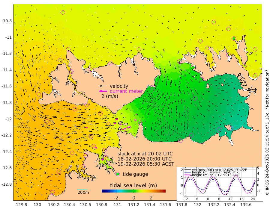 123cm/s 78T +4cm/s rms + 6cm/s 51T. Darwin_C1 52m 83cm/s 85T +4cm/s rms + 7cm/s -161T. Darwin_CW1 22m 57cm/s 75T +4cm/s rms + 8cm/s 61T. Darwin_CW2 34m 31cm/s 63T +3cm/s rms + 9cm/s 98T. Darwin_CW3 22m 55cm/s 86T +5cm/s rms + 7cm/s 88T. Darwin_C3 56m 78cm/s 62T +2cm/s rms + 9cm/s -126T. Darwin_CTbW 22m 71cm/s 92T +1cm/s rms + 1cm/s -47T. DARBGF 30m 72cm/s 121T +4cm/s rms + 3cm/s 80T. NRSDAR 19m 74cm Goodrich Bank 170cm Point Jenny 172cm Native Point 163cm Fish Reef 177cm Tapa Bay 136cm Point Fawcett (Offshore) 169cm Burge Point 174cm Munkunuwa 159cm Beagle A 165cm Parsons Bank 165cm Fenton Patches 149cm Hancox Shoal Area 159cm Nightcliff 159cm Darwin 170cm Charles Point Patches 68cm Glyde Point -30cm Chambers Bay -56cm Point Stuart 29cm Cape Hotham -21cm Christine Reef -76cm West Alligator Head -121cm East Field Island -9cm Two Hills Bay 3cm Camp Point 165cm Medina Inlet South 131cm South Barlow Point 112cm St. Asaph Bay 84cm Cape Van Dieman 85cm Snake Bay 77cm Cache Point 69cm Point Jahleel (Off) 64cm Cape Don 78cm Port Essington 81cm Smith Point - West 77cm NW Peacock Island 65cm North Of Jones Shoal 24cm Peacock Island 79cm Point David 84cm D'urville Point 76cm Copeland Island 71cm One Tree Point