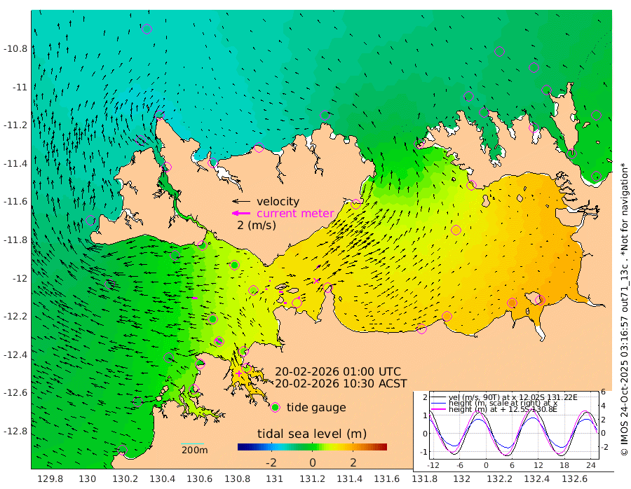 29cm/s 83T +4cm/s rms + 6cm/s 51T. Darwin_C1 52m 22cm/s 88T +4cm/s rms + 7cm/s -161T. Darwin_CW1 22m 15cm/s 61T +4cm/s rms + 8cm/s 61T. Darwin_CW2 34m 41cm/s 41T +3cm/s rms + 9cm/s 98T. Darwin_CW3 22m 41cm/s 92T +5cm/s rms + 7cm/s 88T. Darwin_C3 56m 11cm/s 67T +2cm/s rms + 9cm/s -126T. Darwin_CTbW 22m 66cm/s -84T +1cm/s rms + 1cm/s -47T. DARBGF 30m 83cm/s -54T +4cm/s rms + 3cm/s 80T. NRSDAR 19m -103cm Goodrich Bank -29cm Point Jenny -32cm Native Point -20cm Fish Reef -3cm Tapa Bay -92cm Point Fawcett (Offshore) 4cm Burge Point -29cm Munkunuwa -55cm Beagle A 22cm Parsons Bank 3cm Fenton Patches 51cm Hancox Shoal Area 36cm Nightcliff 48cm Darwin 15cm Charles Point Patches 90cm Glyde Point 172cm Chambers Bay 188cm Point Stuart 111cm Cape Hotham 149cm Christine Reef 216cm West Alligator Head 251cm East Field Island 123cm Two Hills Bay 116cm Camp Point -11cm Medina Inlet South -100cm South Barlow Point -108cm St. Asaph Bay -109cm Cape Van Dieman -104cm Snake Bay -96cm Cache Point -65cm Point Jahleel (Off) -6cm Cape Don -55cm Port Essington -56cm Smith Point - West -49cm NW Peacock Island -66cm North Of Jones Shoal -21cm Peacock Island -5cm Point David -48cm D'urville Point 4cm Copeland Island -12cm One Tree Point