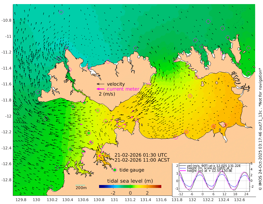 54cm/s 81T +4cm/s rms + 6cm/s 51T. Darwin_C1 52m 38cm/s 90T +4cm/s rms + 7cm/s -161T. Darwin_CW1 22m 24cm/s 66T +4cm/s rms + 8cm/s 61T. Darwin_CW2 34m 51cm/s 44T +3cm/s rms + 9cm/s 98T. Darwin_CW3 22m 56cm/s 91T +5cm/s rms + 7cm/s 88T. Darwin_C3 56m 25cm/s 66T +2cm/s rms + 9cm/s -126T. Darwin_CTbW 22m 61cm/s -82T +1cm/s rms + 1cm/s -47T. DARBGF 30m 80cm/s -53T +4cm/s rms + 3cm/s 80T. NRSDAR 19m -92cm Goodrich Bank 0cm Point Jenny -4cm Native Point 5cm Fish Reef 24cm Tapa Bay -72cm Point Fawcett (Offshore) 32cm Burge Point -6cm Munkunuwa -29cm Beagle A 47cm Parsons Bank 30cm Fenton Patches 76cm Hancox Shoal Area 62cm Nightcliff 72cm Darwin 39cm Charles Point Patches 109cm Glyde Point 187cm Chambers Bay 201cm Point Stuart 126cm Cape Hotham 168cm Christine Reef 228cm West Alligator Head 261cm East Field Island 137cm Two Hills Bay 130cm Camp Point 13cm Medina Inlet South -83cm South Barlow Point -92cm St. Asaph Bay -97cm Cape Van Dieman -94cm Snake Bay -83cm Cache Point -53cm Point Jahleel (Off) 9cm Cape Don -43cm Port Essington -43cm Smith Point - West -37cm NW Peacock Island -56cm North Of Jones Shoal -17cm Peacock Island 3cm Point David -36cm D'urville Point 12cm Copeland Island -3cm One Tree Point
