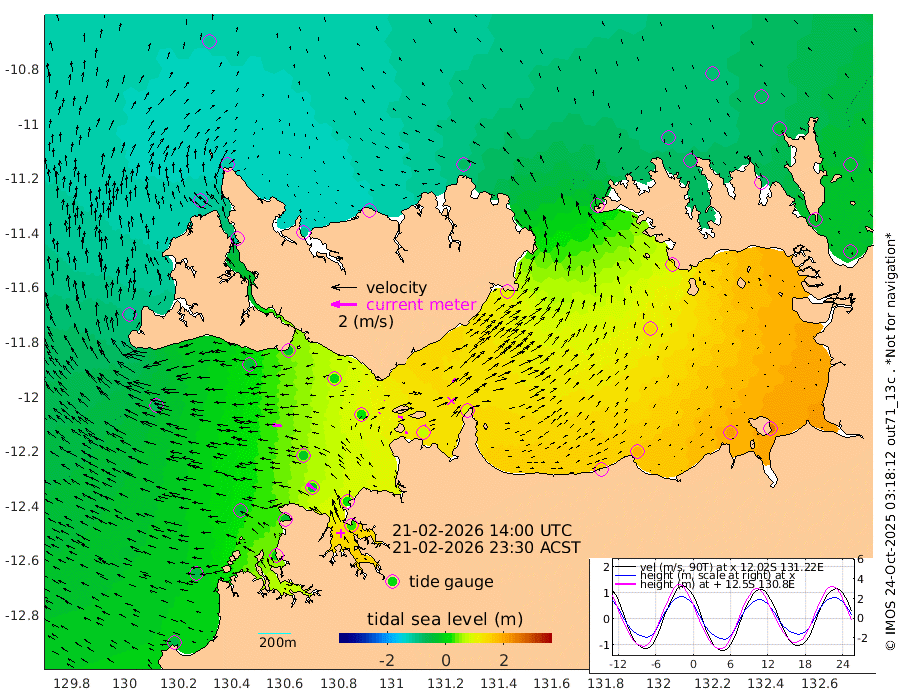 15cm/s 84T +4cm/s rms + 6cm/s 51T. Darwin_C1 52m 9cm/s 88T +4cm/s rms + 7cm/s -161T. Darwin_CW1 22m 9cm/s 55T +4cm/s rms + 8cm/s 61T. Darwin_CW2 34m 38cm/s 44T +3cm/s rms + 9cm/s 98T. Darwin_CW3 22m 39cm/s 94T +5cm/s rms + 7cm/s 88T. Darwin_C3 56m 3cm/s 74T +2cm/s rms + 9cm/s -126T. Darwin_CTbW 22m 73cm/s -83T +1cm/s rms + 1cm/s -47T. DARBGF 30m 88cm/s -53T +4cm/s rms + 3cm/s 80T. NRSDAR 19m -109cm Goodrich Bank -47cm Point Jenny -49cm Native Point -40cm Fish Reef -29cm Tapa Bay -109cm Point Fawcett (Offshore) -8cm Burge Point -44cm Munkunuwa -69cm Beagle A 1cm Parsons Bank -15cm Fenton Patches 20cm Hancox Shoal Area 13cm Nightcliff 23cm Darwin -17cm Charles Point Patches 75cm Glyde Point 161cm Chambers Bay 183cm Point Stuart 96cm Cape Hotham 143cm Christine Reef 213cm West Alligator Head 251cm East Field Island 115cm Two Hills Bay 108cm Camp Point -29cm Medina Inlet South -110cm South Barlow Point -120cm St. Asaph Bay -116cm Cape Van Dieman -108cm Snake Bay -106cm Cache Point -76cm Point Jahleel (Off) -16cm Cape Don -70cm Port Essington -74cm Smith Point - West -68cm NW Peacock Island -81cm North Of Jones Shoal -27cm Peacock Island -30cm Point David -68cm D'urville Point -24cm Copeland Island -33cm One Tree Point
