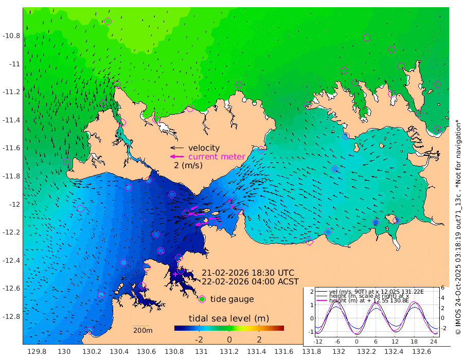 194cm/s -101T +4cm/s rms + 6cm/s 51T. Darwin_C1 52m 146cm/s -91T +4cm/s rms + 7cm/s -161T. Darwin_CW1 22m 98cm/s -106T +4cm/s rms + 8cm/s 61T. Darwin_CW2 34m 105cm/s -137T +3cm/s rms + 9cm/s 98T. Darwin_CW3 22m 169cm/s -91T +5cm/s rms + 7cm/s 88T. Darwin_C3 56m 107cm/s -115T +2cm/s rms + 9cm/s -126T. Darwin_CTbW 22m 9cm/s -169T +1cm/s rms + 1cm/s -47T. DARBGF 30m 16cm/s 171T +4cm/s rms + 3cm/s 80T. NRSDAR 19m 29cm Goodrich Bank -182cm Point Jenny -179cm Native Point -195cm Fish Reef -218cm Tapa Bay -62cm Point Fawcett (Offshore) -239cm Burge Point -193cm Munkunuwa -149cm Beagle A -244cm Parsons Bank -232cm Fenton Patches -251cm Hancox Shoal Area -257cm Nightcliff -274cm Darwin -233cm Charles Point Patches -223cm Glyde Point -212cm Chambers Bay -211cm Point Stuart -204cm Cape Hotham -196cm Christine Reef -230cm West Alligator Head -227cm East Field Island -178cm Two Hills Bay -173cm Camp Point -208cm Medina Inlet South -48cm South Barlow Point -12cm St. Asaph Bay 28cm Cape Van Dieman 16cm Snake Bay 18cm Cache Point -14cm Point Jahleel (Off) -81cm Cape Don -23cm Port Essington -27cm Smith Point - West -26cm NW Peacock Island 2cm North Of Jones Shoal -2cm Peacock Island -62cm Point David -34cm D'urville Point -67cm Copeland Island -55cm One Tree Point