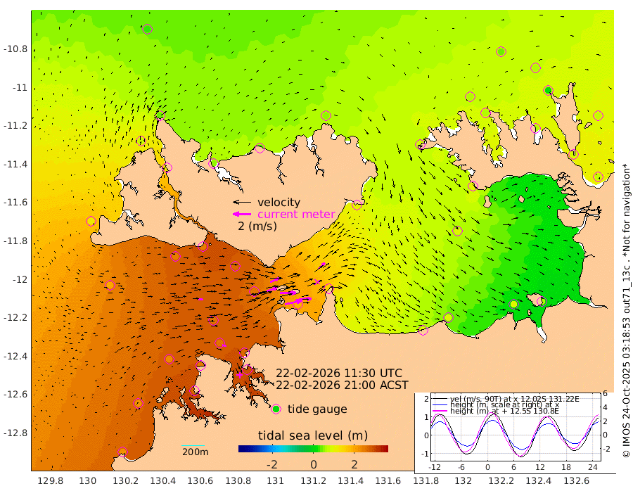 195cm/s 78T +4cm/s rms + 6cm/s 51T. Darwin_C1 52m 141cm/s 90T +4cm/s rms + 7cm/s -161T. Darwin_CW1 22m 119cm/s 74T +4cm/s rms + 8cm/s 61T. Darwin_CW2 34m 100cm/s 46T +3cm/s rms + 9cm/s 98T. Darwin_CW3 22m 181cm/s 89T +5cm/s rms + 7cm/s 88T. Darwin_C3 56m 102cm/s 64T +2cm/s rms + 9cm/s -126T. Darwin_CTbW 22m 47cm/s 83T +1cm/s rms + 1cm/s -47T. DARBGF 30m 43cm/s 107T +4cm/s rms + 3cm/s 80T. NRSDAR 19m 27cm Goodrich Bank 216cm Point Jenny 218cm Native Point 233cm Fish Reef 246cm Tapa Bay 123cm Point Fawcett (Offshore) 267cm Burge Point 247cm Munkunuwa 194cm Beagle A 269cm Parsons Bank 254cm Fenton Patches 250cm Hancox Shoal Area 263cm Nightcliff 285cm Darwin 258cm Charles Point Patches 185cm Glyde Point 104cm Chambers Bay 94cm Point Stuart 147cm Cape Hotham 96cm Christine Reef 94cm West Alligator Head 60cm East Field Island 106cm Two Hills Bay 103cm Camp Point 247cm Medina Inlet South 120cm South Barlow Point 77cm St. Asaph Bay 34cm Cape Van Dieman 49cm Snake Bay 32cm Cache Point 50cm Point Jahleel (Off) 89cm Cape Don 60cm Port Essington 62cm Smith Point - West 58cm NW Peacock Island 35cm North Of Jones Shoal 15cm Peacock Island 79cm Point David 67cm D'urville Point 78cm Copeland Island 73cm One Tree Point