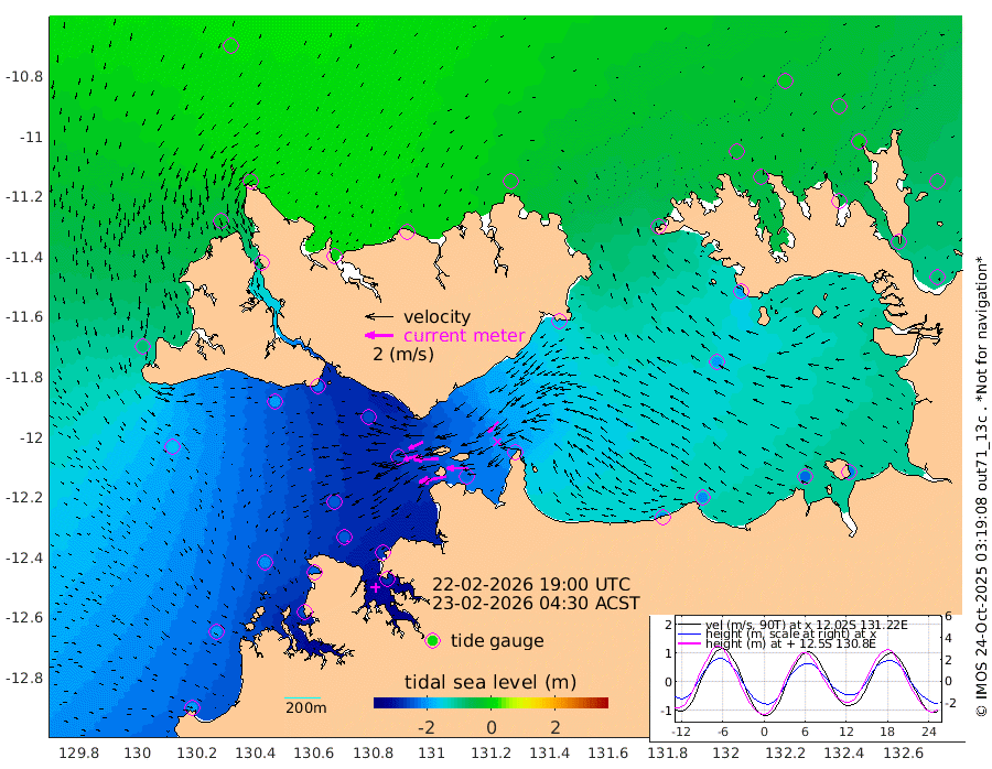 199cm/s -101T +4cm/s rms + 6cm/s 51T. Darwin_C1 52m 149cm/s -91T +4cm/s rms + 7cm/s -161T. Darwin_CW1 22m 101cm/s -106T +4cm/s rms + 8cm/s 61T. Darwin_CW2 34m 104cm/s -136T +3cm/s rms + 9cm/s 98T. Darwin_CW3 22m 172cm/s -90T +5cm/s rms + 7cm/s 88T. Darwin_C3 56m 112cm/s -115T +2cm/s rms + 9cm/s -126T. Darwin_CTbW 22m 11cm/s -136T +1cm/s rms + 1cm/s -47T. DARBGF 30m 12cm/s -170T +4cm/s rms + 3cm/s 80T. NRSDAR 19m 8cm Goodrich Bank -196cm Point Jenny -193cm Native Point -208cm Fish Reef -228cm Tapa Bay -83cm Point Fawcett (Offshore) -248cm Burge Point -202cm Munkunuwa -164cm Beagle A -251cm Parsons Bank -239cm Fenton Patches -256cm Hancox Shoal Area -260cm Nightcliff -279cm Darwin -244cm Charles Point Patches -226cm Glyde Point -209cm Chambers Bay -208cm Point Stuart -205cm Cape Hotham -197cm Christine Reef -225cm West Alligator Head -219cm East Field Island -182cm Two Hills Bay -174cm Camp Point -218cm Medina Inlet South -68cm South Barlow Point -33cm St. Asaph Bay 6cm Cape Van Dieman -5cm Snake Bay -5cm Cache Point -33cm Point Jahleel (Off) -96cm Cape Don -43cm Port Essington -47cm Smith Point - West -46cm NW Peacock Island -18cm North Of Jones Shoal -9cm Peacock Island -78cm Point David -53cm D'urville Point -82cm Copeland Island -72cm One Tree Point